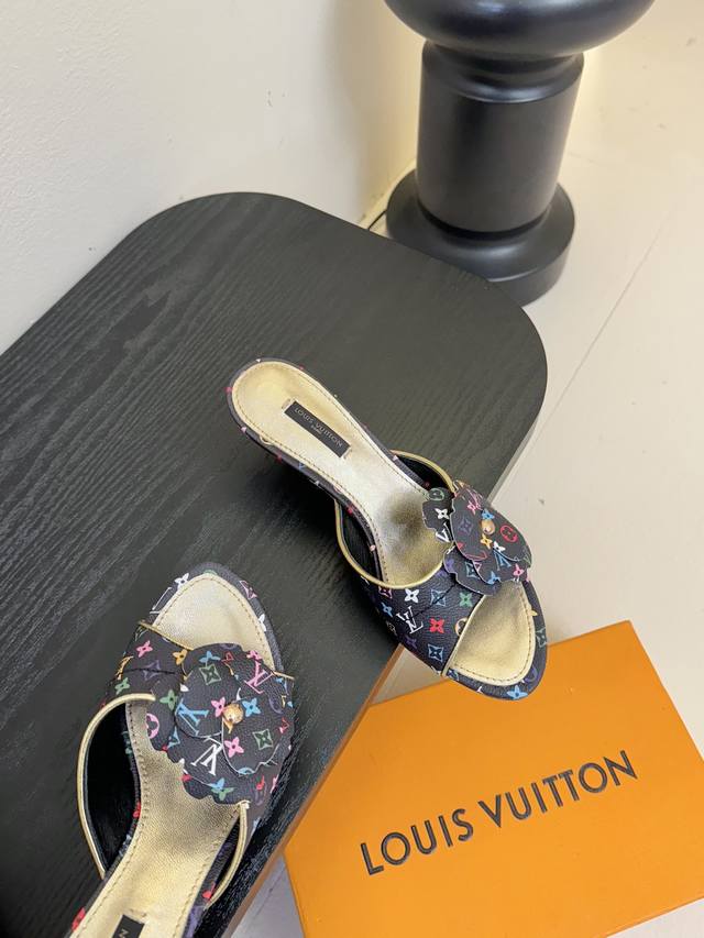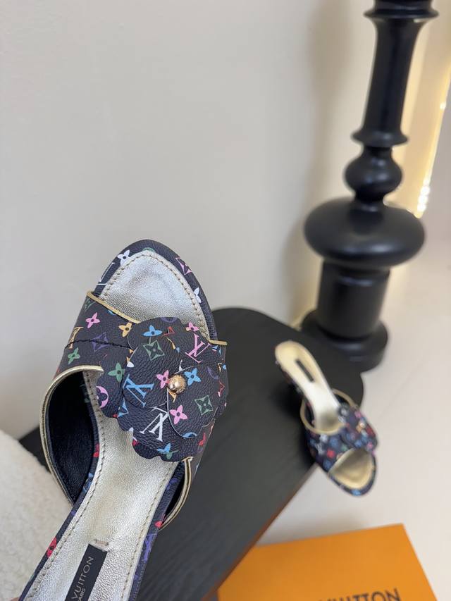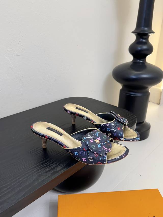/ 拖鞋 驴家新品 New Arrival~Lv春夏单宁猫跟拖鞋.单宁色搭配的棕色皮质,也太出彩了! 刚刚好的小猫跟,性感舒适,拉满了夏日美鞋能给的满分情绪价值.凉