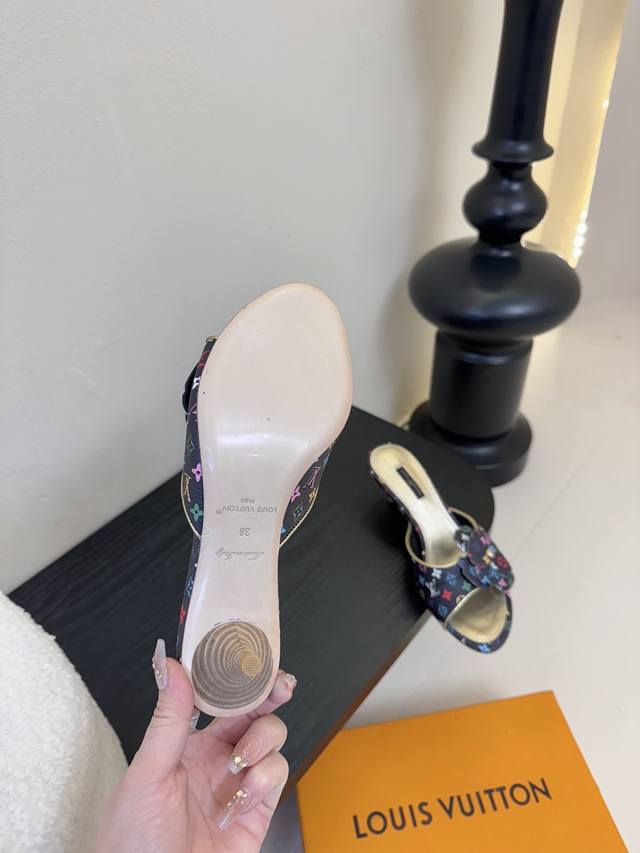 拖鞋 驴家新品 New Arrival~Lv春夏单宁猫跟拖鞋.单宁色搭配的棕色皮质,也太出彩了! 刚刚好的小猫跟,性感舒适,拉满了夏日美鞋能给的满分情绪价值.凉鞋的造型也很乖巧好看呀! 羊皮内里,本色牛皮底 Size 35-39 4041定制