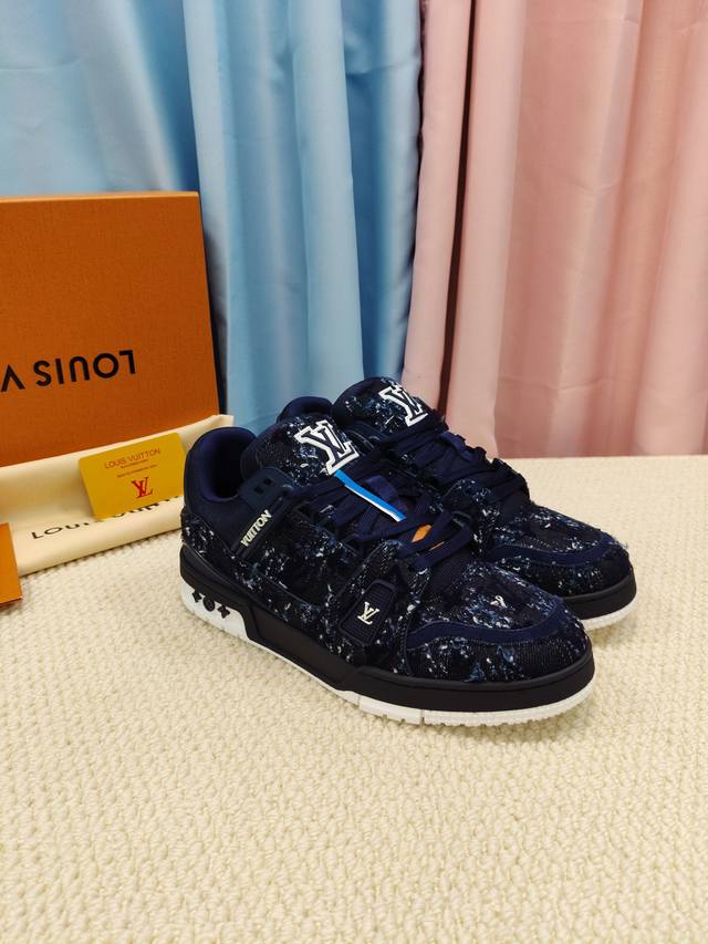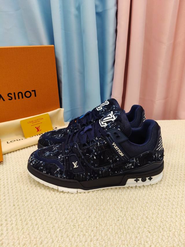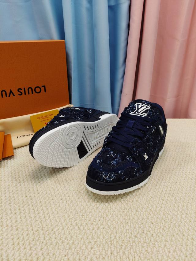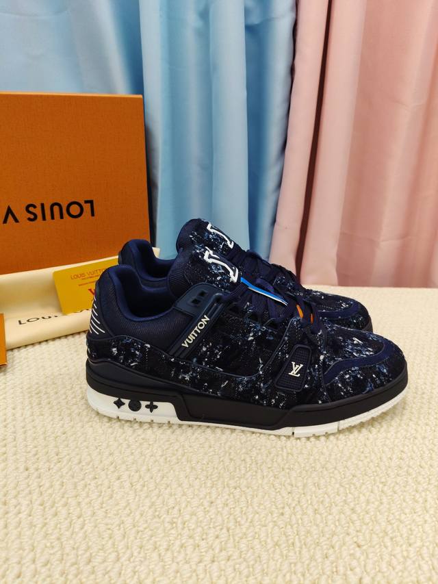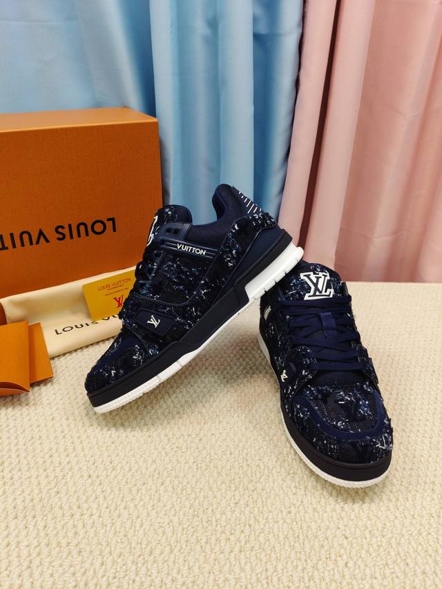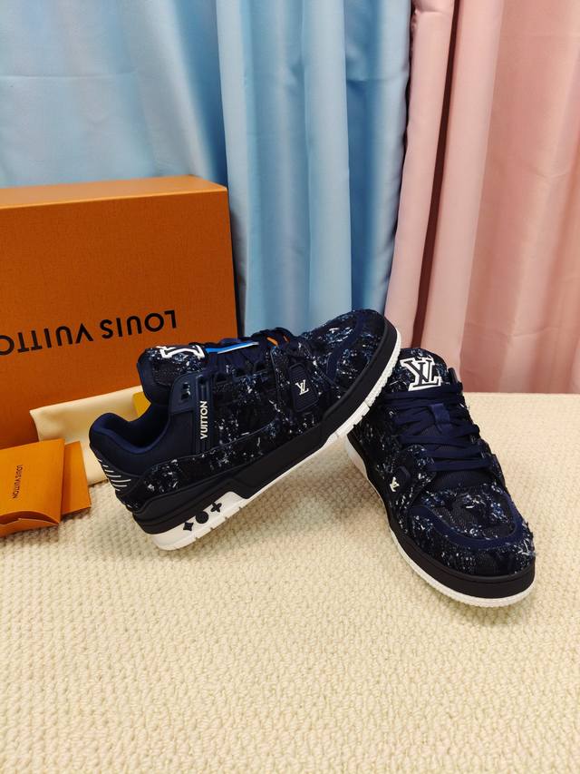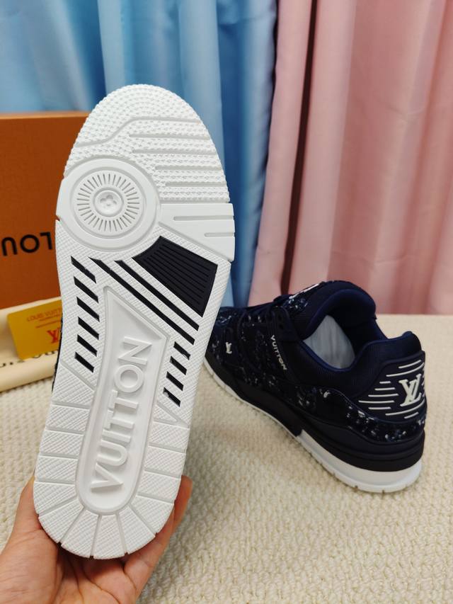新款情侣出货了 DDD Lv-Trainer路易-威登 pk市场一切版本 情侣款 DDD 走秀新款 篮球板鞋 代购品质 DDD 原版1:1开发复刻!!上脚非常舒适 做工精细 DDD 鞋面由意大利进口小牛皮拼接,侧边饰有品牌Logo标志及签名,进口了透气网布内里,脚感超舒适。原厂特供原版双色Tpu吸模大底。套包工艺 固特异缝合锁边 DDD Size:女款35-40 DDD 男款39-45标准码 38 46 4730定做不退不换 DDD