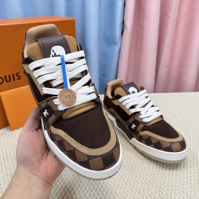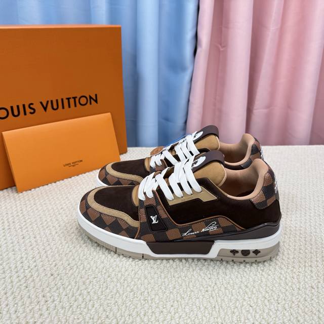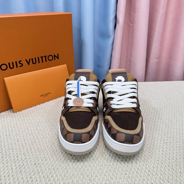 / 新款的情侣新款的出货路易-威登 pk市场一切版本 走秀新款 篮球板鞋 代购品质 原版1:1开发复刻!!上脚非常舒适 做工精细 鞋面由意大利进口小牛皮拼接,♀侧边
