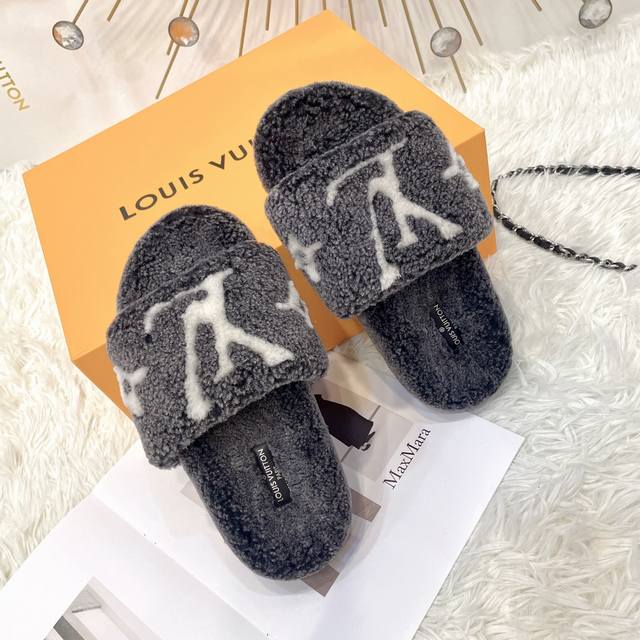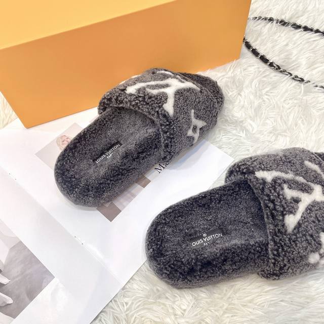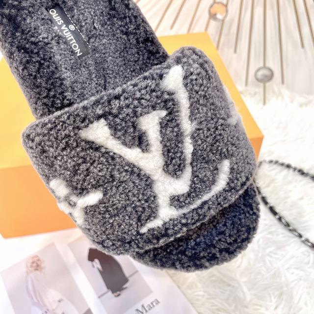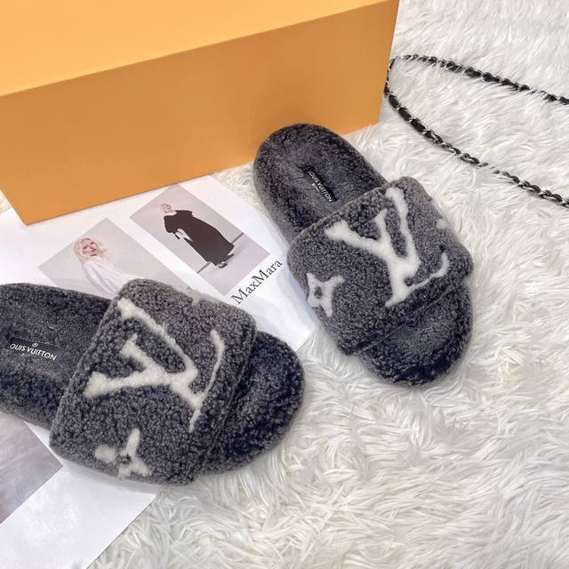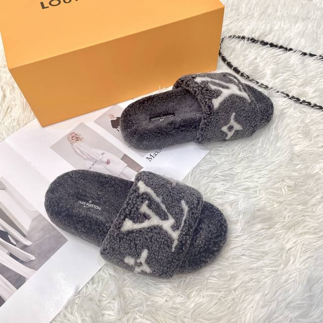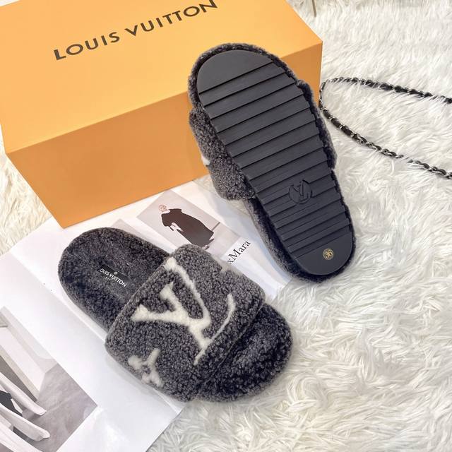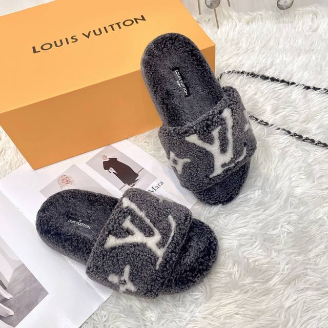 新款 Louis Vuitton Lv毛拖 染色工艺 一款巨型潮流的秋冬厚毛拖,超舒服、我家只做全真皮羊羔毛 奢华的羊毛质感让你的美足更加美丽、信心、舒心十足,