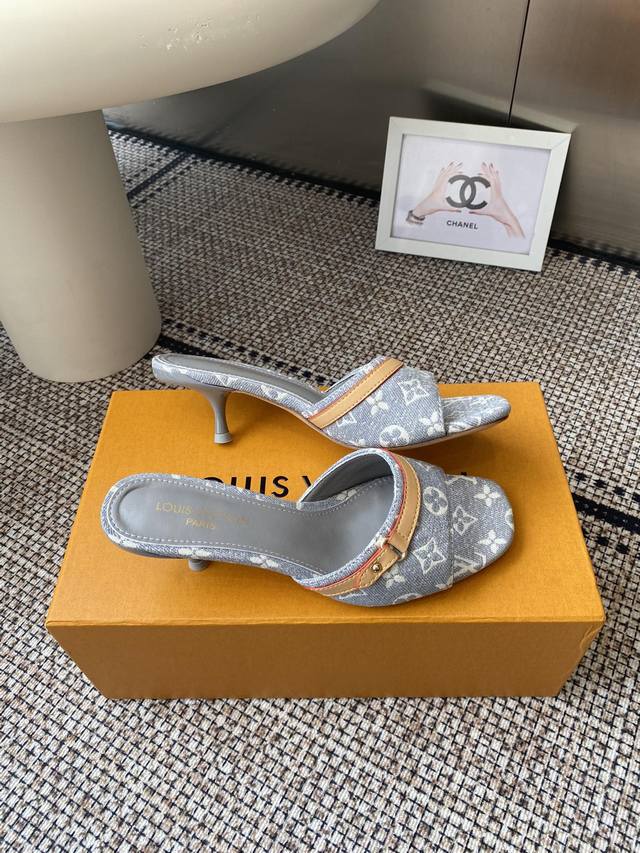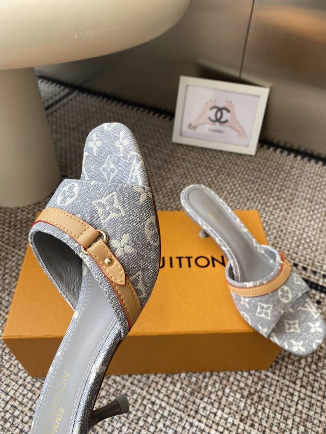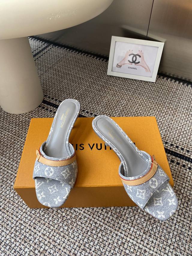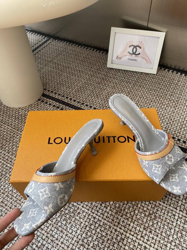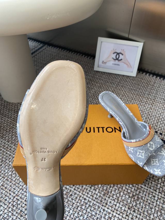新配色 Louisvuitto* 25Ss春夏新款 黑白三彩猫跟平底凉拖