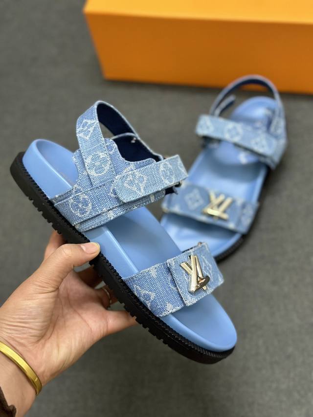 出厂价P 路易威登春夏包头拖凉鞋 本款 Maya Flatform 凉鞋选用光滑牛皮革,令宽幅鞋带穿梭于皮革鞋舌之间,再以金属 Lv Circle...
