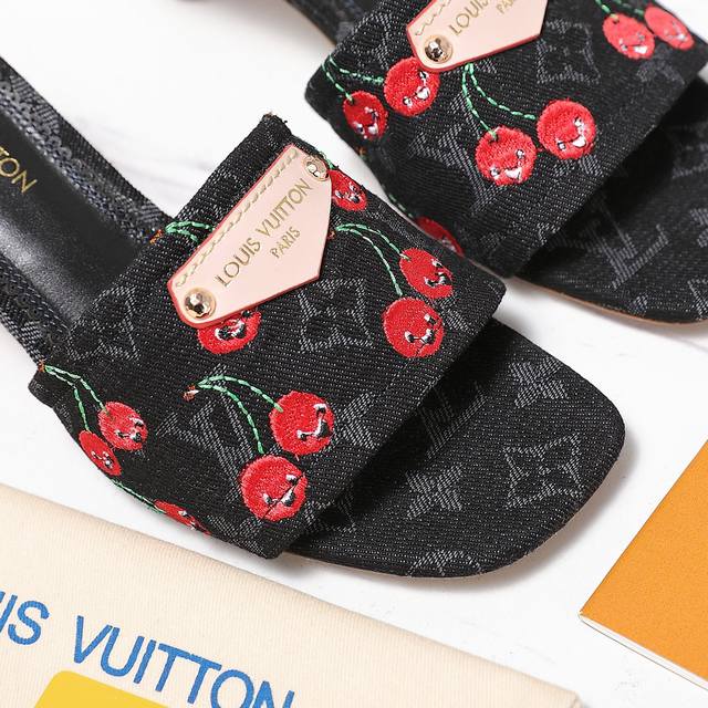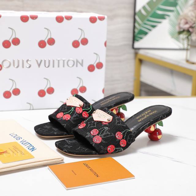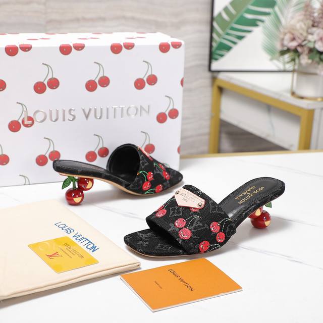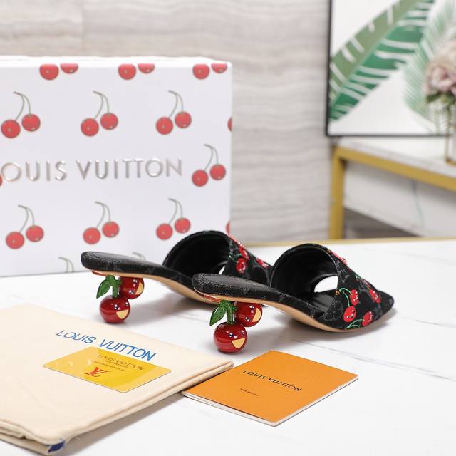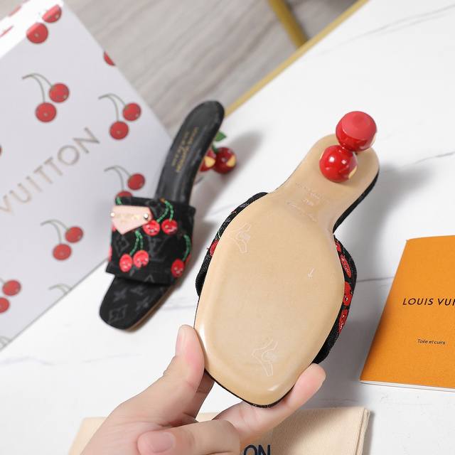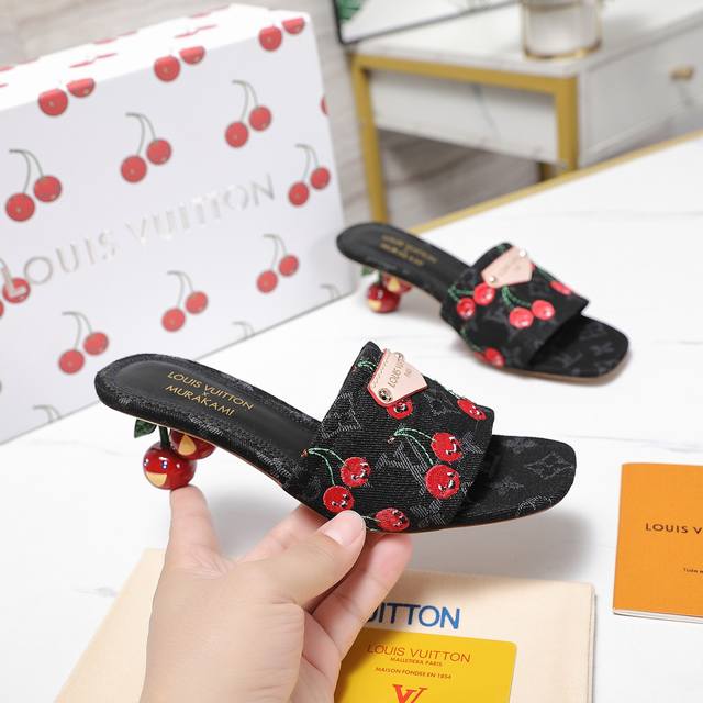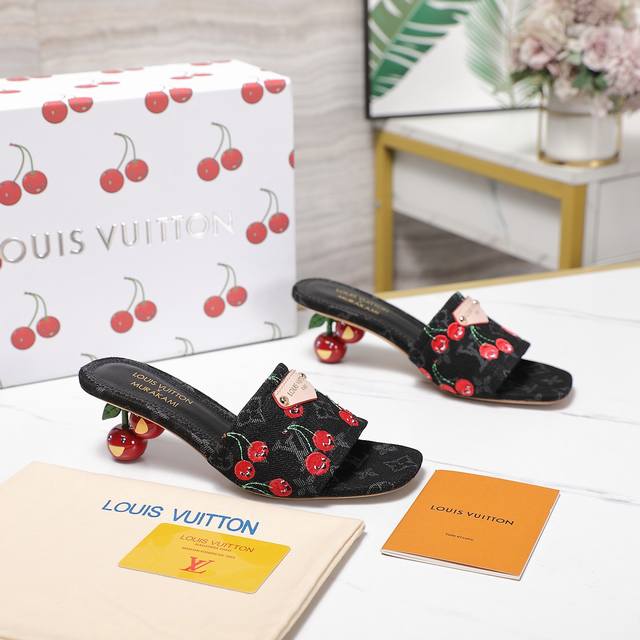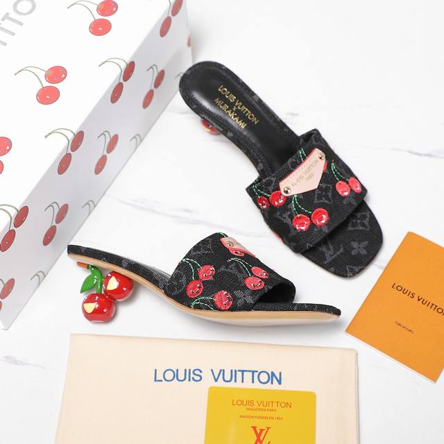 Louis Vuitton 易路威登 × 村隆上三第章篇樱列系桃 Lv X Tm Lily 凉拖鞋经典花老素元搭配樱桃拖跟鞋