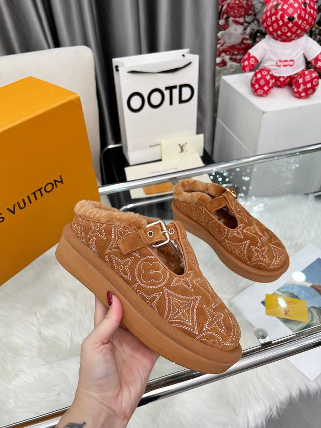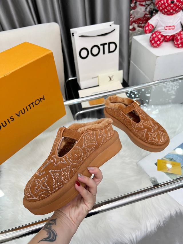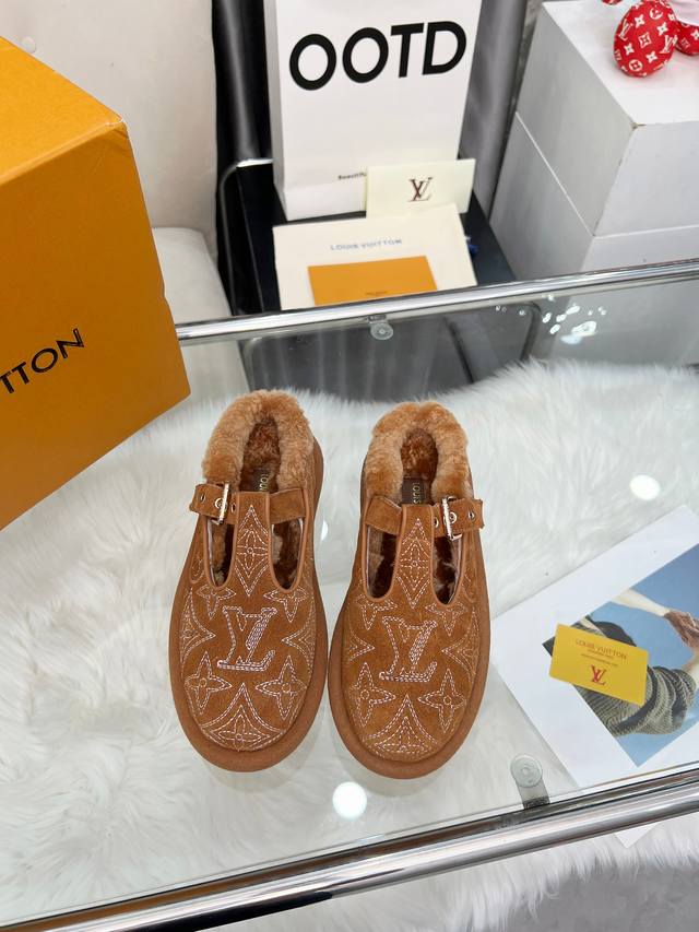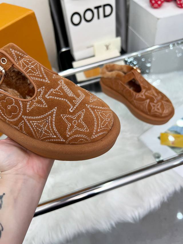 / 毛里 2025 短靴 面料:采用进口高丝光牛猄皮面Lv 专用立体电绣花荟工艺, 搭配皮毛一体羊毛内里。更显时尚,进口高密度橡胶美耐底 高密度发泡材质填充 ,轻盈