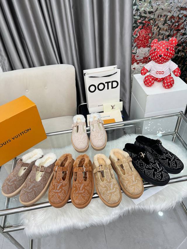 量大从优 可合作档口 新款 Louis Vuitton Lv毛拖 官网同步:专柜品质!我家只做全真皮羊羔毛...