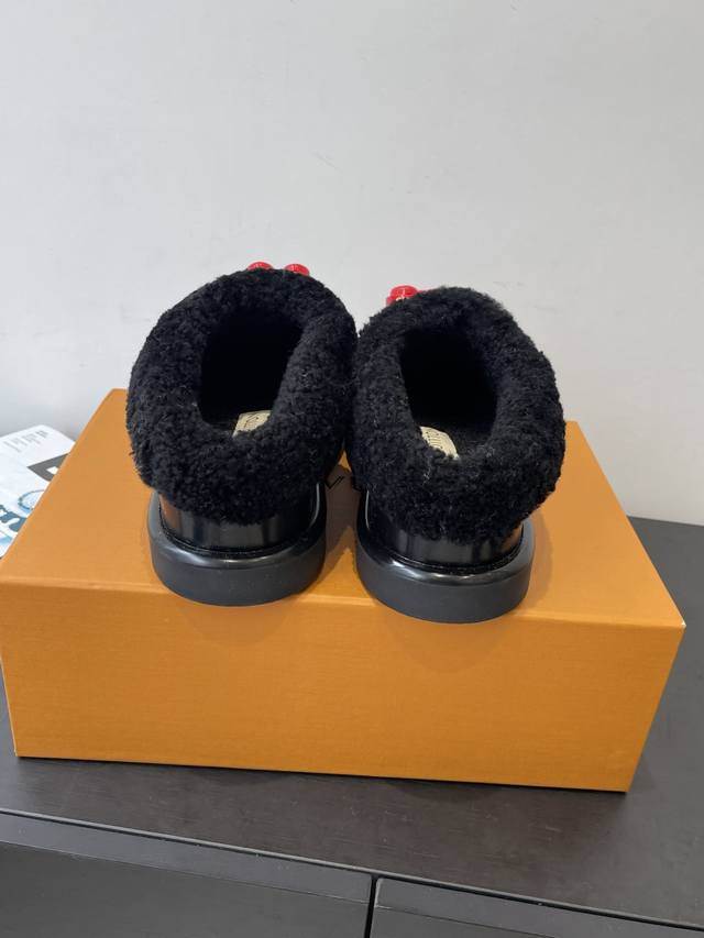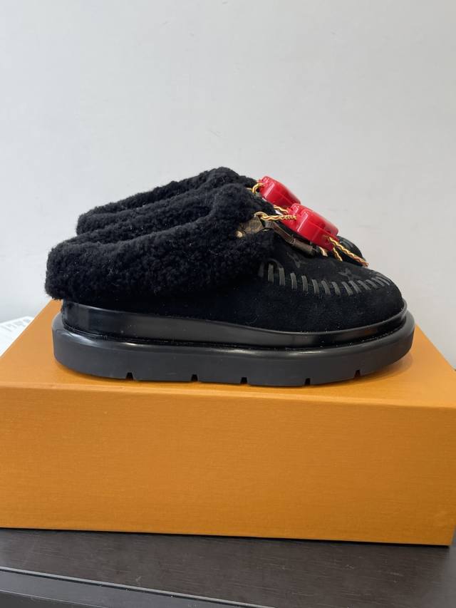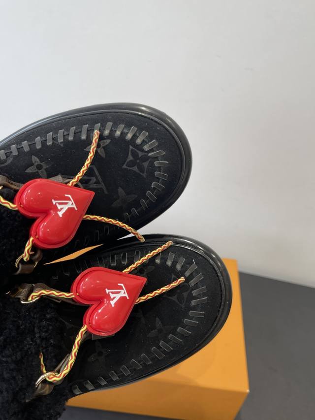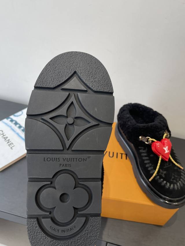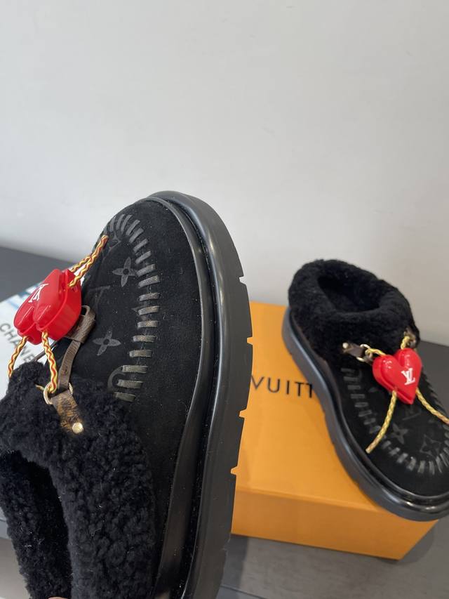 爱心配饰¥p100} 路易威登 新品滑雪系列 雪地靴 毛毛拖 以绒面牛皮革呈现丝绒质感 搭配柔暖羊毛皮内衬 鞋面的 字母缝线和可调节鞋带的铭纹搭扣共同丰富品牌细