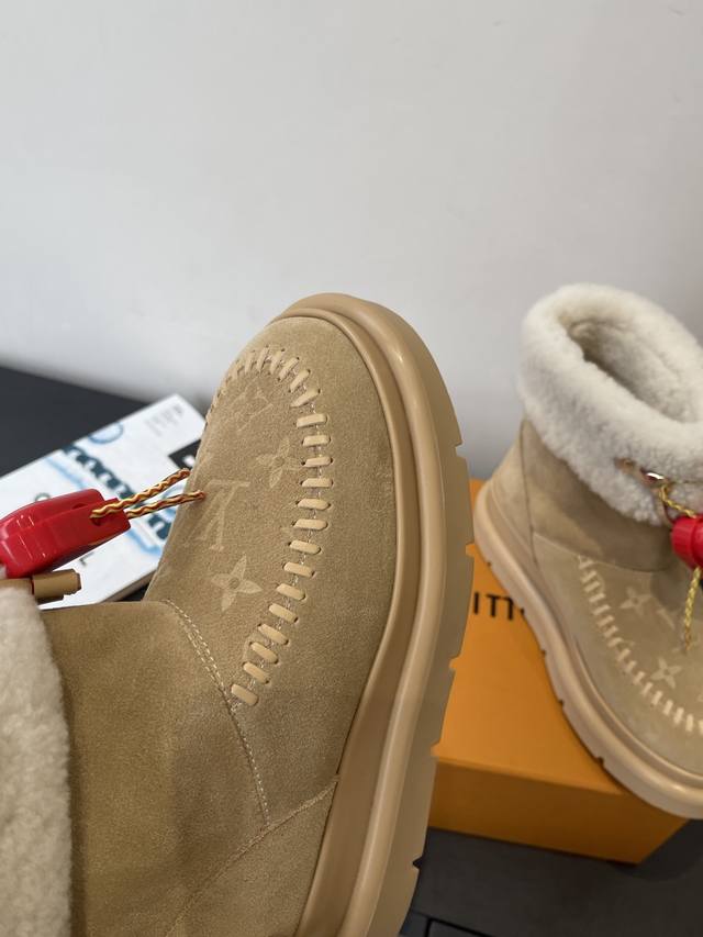 爱心配饰¥P120} DDD 路易威登 新品滑雪系列 雪地靴 毛毛靴 DDD 以绒面牛皮革呈现丝绒质感 搭配柔暖羊毛皮内衬 鞋面的 字母缝线和可调节鞋带的铭纹搭