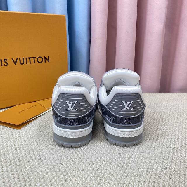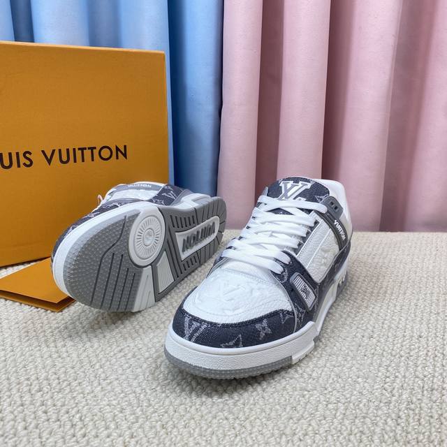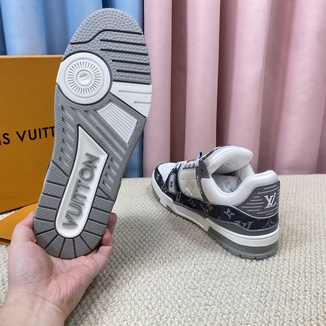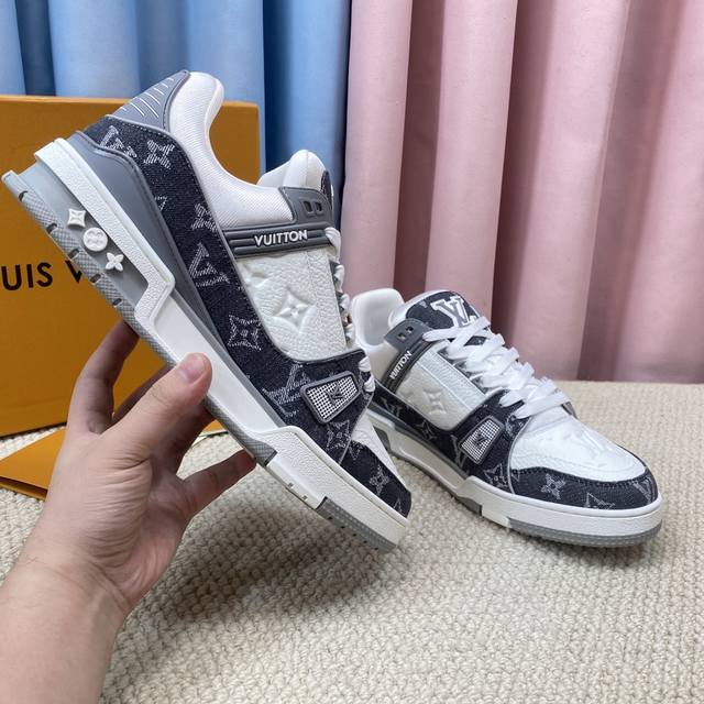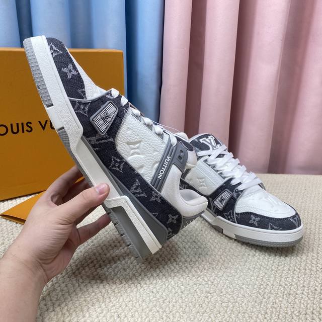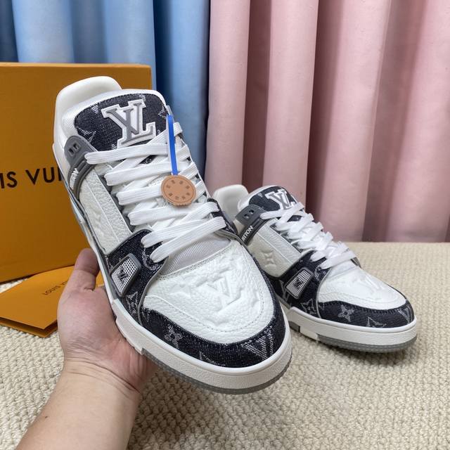 现货新款的升级版情侣代购品质 DDD Lv-路易-威登 pk市场一切版本 DDD 走秀新款 篮球板鞋 代购品质 DDD 原版1:1开发复刻!!上脚非常舒适 做工精细 DDD 鞋面由意大利进口小牛皮拼接,侧边饰有品牌Logo标志及签名,进口了透气网布内里,脚感超舒适。原厂特供原版双色Tpu吸模大底。套包工艺 固特异缝合锁边 DDD Size:女款35-40 DDD 男款39-44标准码 38 45 46 ..需订做不退不换 47+80元可订做 DDD