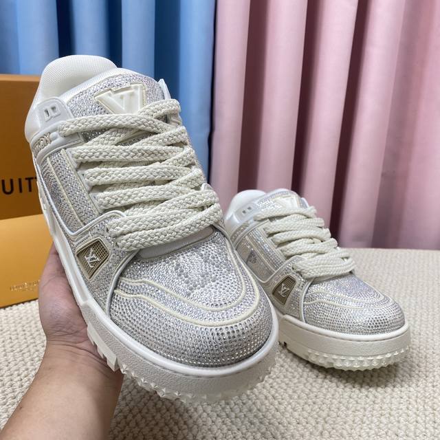 现货的 DDD 顶级版本 篮球板鞋 钻鞋 DDD Louis*Vuitto* Lv Trainer DDD 运动鞋欧洲代购1W Rmb购入 DDD 历时一个月爆拆开发 大底和面料私模 DDD 鞋面更是报废了三套模具 DDD 才完美调整至原版一致较果 DDD 绝对下血本费心思的一款鞋子 DDD 自Vifgil到来之后而设计的这一系列 DDD 每一季度都深受众多粉丝的青睐 DDD 搭配不同的袜子更显个性哦 DDD 私模奢华洛施奇水钻 DDD Tpu原版大底 DDD 原版包装 DDD 码数:男39-45 38