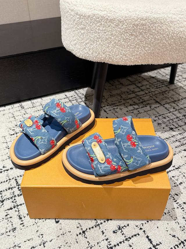 Louisvuitton 25 Miami系列 魔术贴 樱桃风 沙滩 凉拖鞋