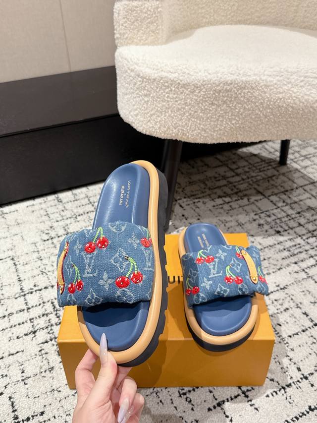 Louisvuitton 25 Miami系列 魔术贴 樱桃风 沙滩 凉拖鞋