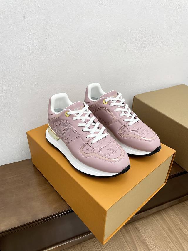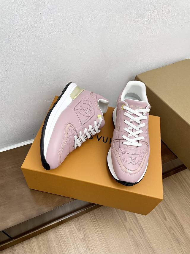 皮面 代购级Lv路易威登L家驴牌 最新Neo Run Away系列 休闲 运动鞋 原版购入开发 做货 这款Neo Run Away 运动鞋以双色牛皮革升级品牌经典 Run Away 运动鞋,借利落线条续写跑鞋灵感。楔形外底、侧面 Lv 字母和后部铭纹鞋带固定夹共筑考究细节 配送专柜精美包装 面料 : 原版定制进口头层牛皮 内里 : 定制进口透气网里 鞋底 : 原版开模超轻发泡+Tpu材质 底厚 :5Cm Size : 女款35-41 40 41定做