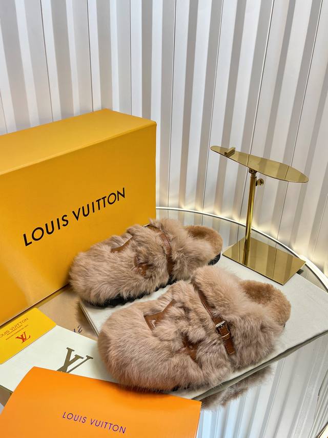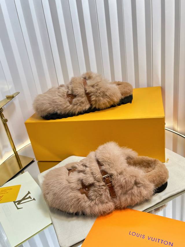 路易威*Lv新款羊卷毛拖鞋,羊卷毛面,羊卷毛垫脚,发泡底,35-39码 40-42码定做不退换 DDD