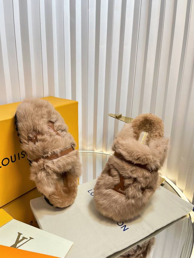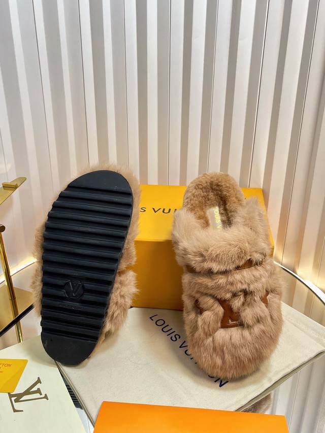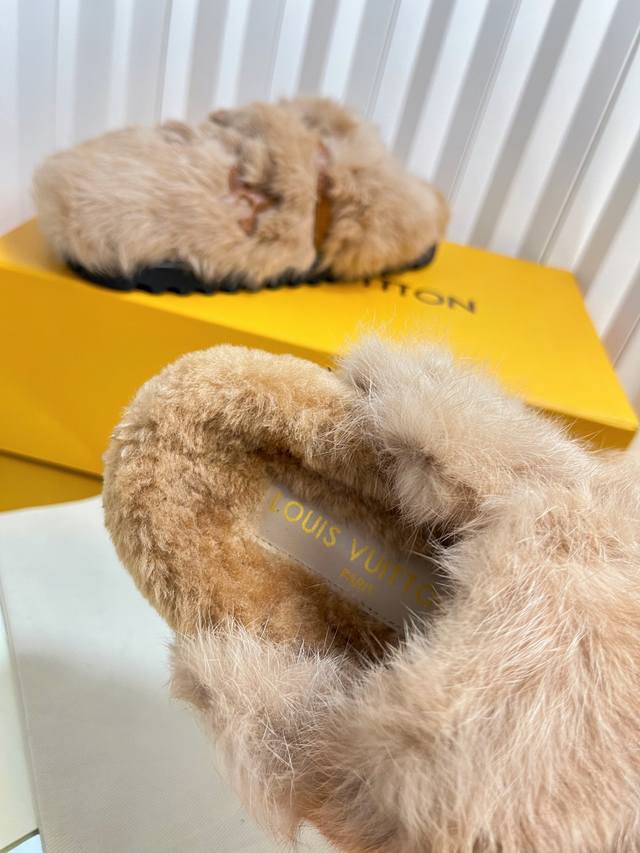 路易威*Lv新款羊卷毛拖鞋,羊卷毛面,羊卷毛垫脚,发泡底,35-39码 40-42码定做不退换