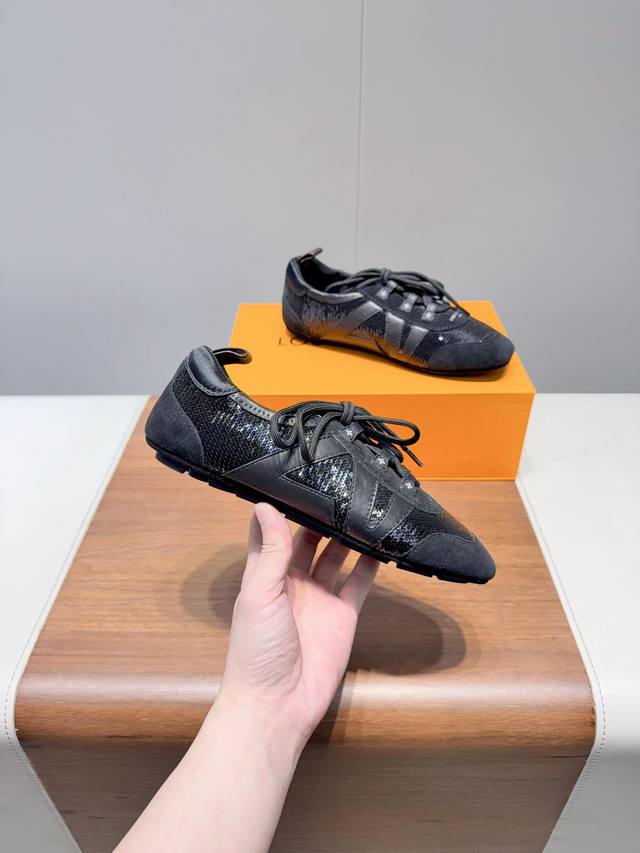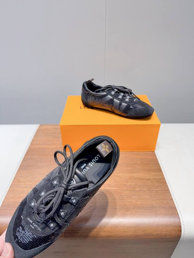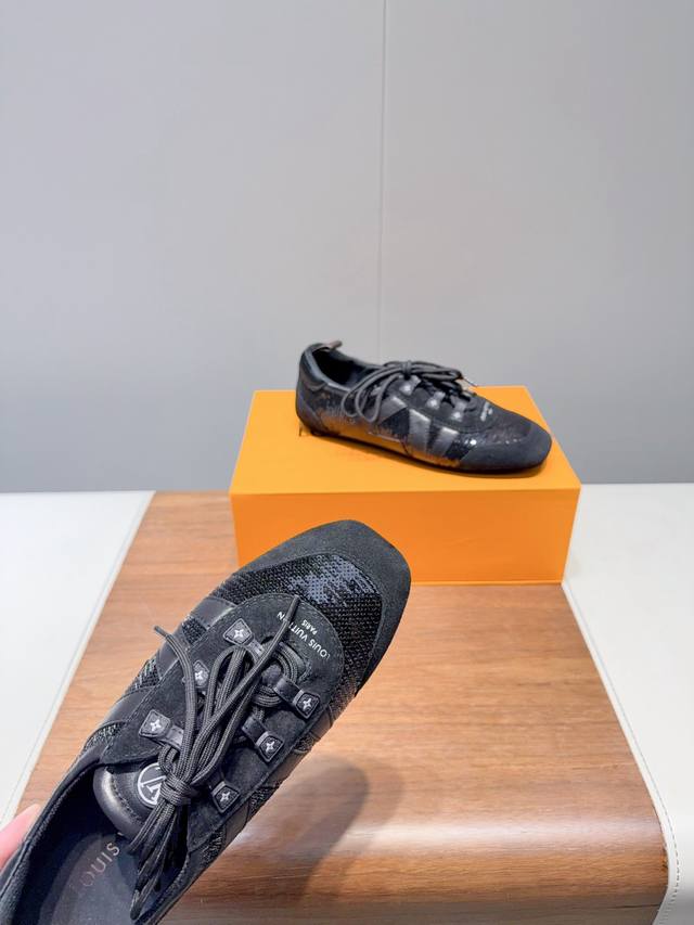 运动鞋近来热度居高不下!品牌代言人宋茜周冬雨,品牌大使钟楚曦欧阳娜娜金晨,演员庄达菲徐若晗沈羽洁张楚文,田径运动员吴艳妮纷纷上身,演绎活力运动风潮这双鞋将运动鞋与现代芭蕾平底鞋的设计相融合,线条流畅,尽显轻盈动感。功能与时尚完美结合,完美诠释极简运动风。无论是日常休闲,还是精心装扮,它都能轻松适配,Sacchetto 工艺打造的柔韧鞋底,带来超棒脚感。鞋身带有 Monogra- 图案等路易威登标志性元素,格调瞬间拉满,吸睛无数。想让穿搭更出彩?选它准没错!Size: 女款35-40 40女定做不退换