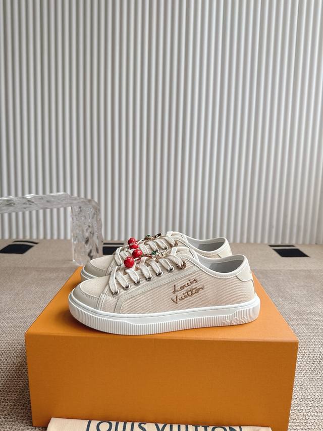 Lv Lagoon 运动鞋取材 Monogram 丹宁布,为经典设计注入复古气息。皮革饰边跃现路易威登标识,铭纹孔眼、镶边和鞋带彰显考究细节,点缀 Monogram 花卉的橡胶外底完善整体。