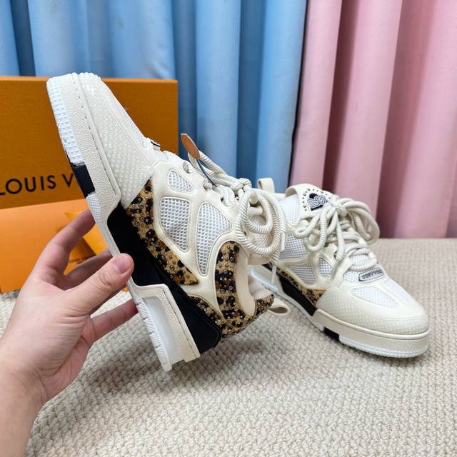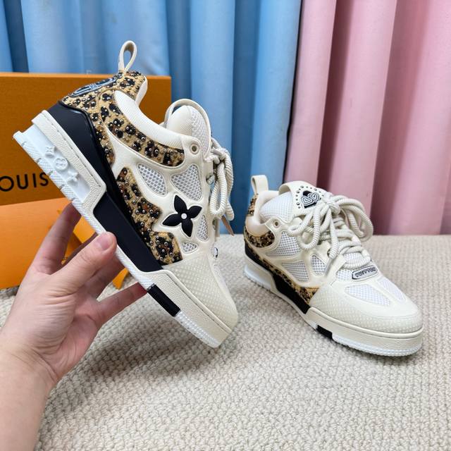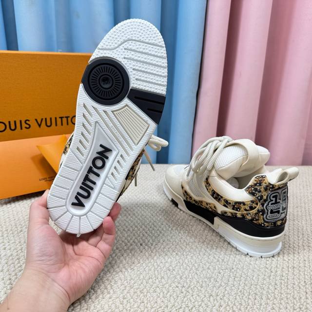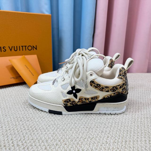 / 钻鞋.新款的路易-威登 pk市场一切版本 情侣款 走秀新款 篮球板鞋 代购品质 原版1:1开发复刻!!上脚非常舒适 做工精细 鞋面由意大利进口小牛皮拼接,侧边饰