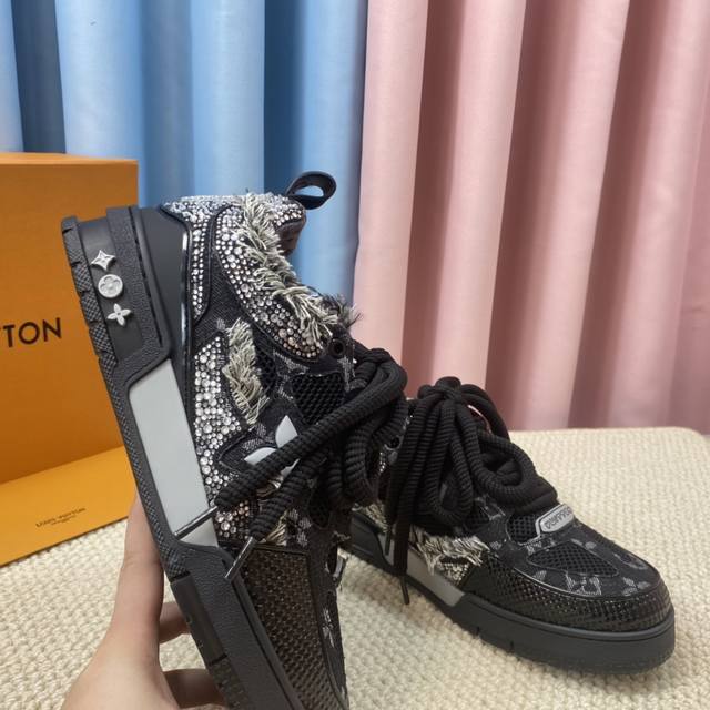 / 钻鞋路易-威登 pk市场一切版本 情侣款 走秀新款 篮球板鞋 原版1:1开发复刻!!上脚非常舒适 做工精细 鞋面由意大利进口小牛皮拼接,侧边饰有品牌Logo标志