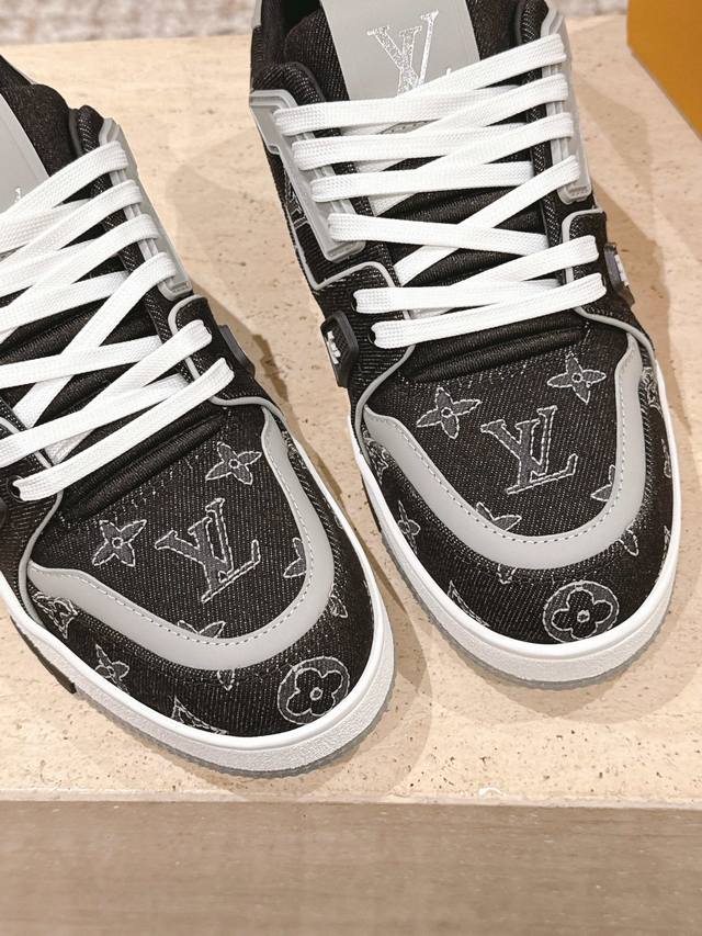 顶级版本 K007 Louis Vuitton 路易威登Time Out休闲板鞋 小白鞋 本款Time Out运动鞋拼接牛皮革与 Monogram 丹宁布,与当
