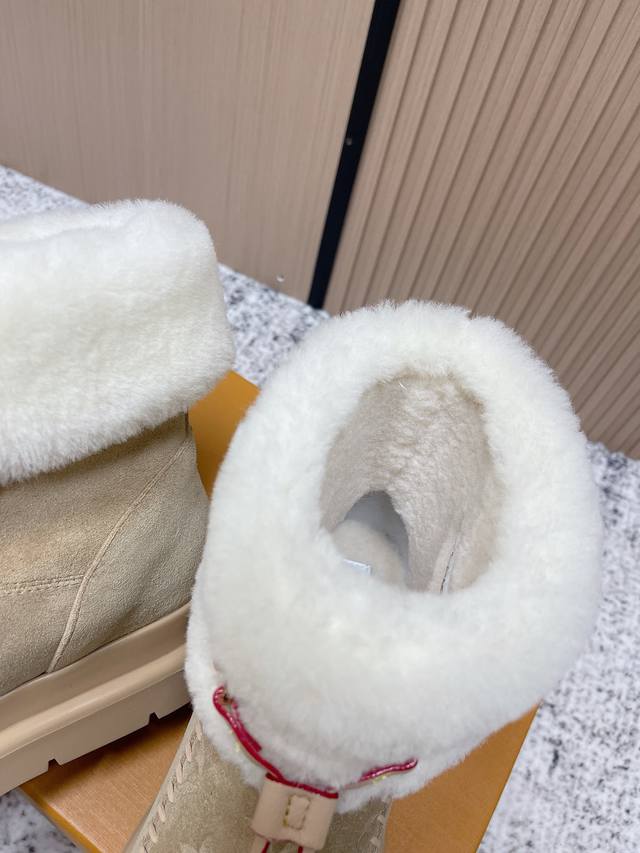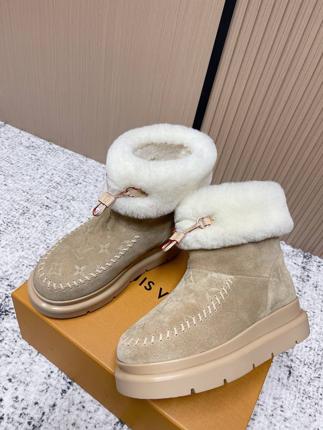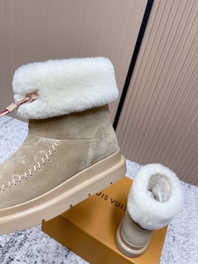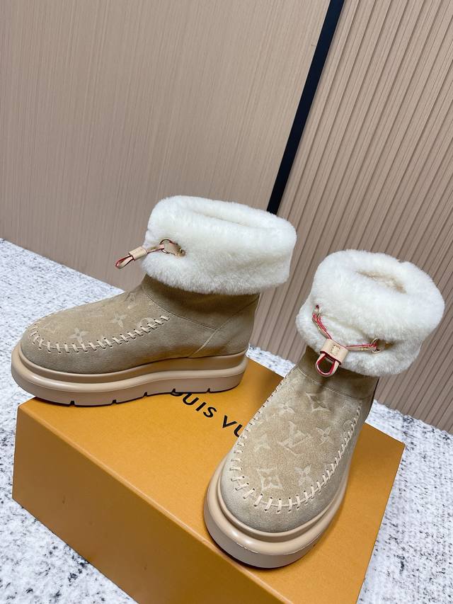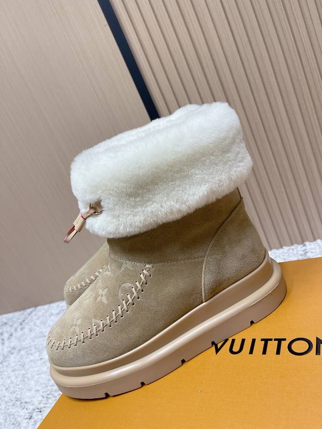 顶级品质: 爱心扣60 DDD Louis Vuiton 路易威登 2025Ss新款 Lv冬季滑雪系列Monogram雪地靴,辦识度超高!内里柔软羊皮毛,保暖力满分,厚底橡胶鞋底防滑又增高约6Cm,超适合寒冷天气穿,穿脱方便,搭配牛仔裤或羽绒服都很时髦,舒适又实用,是冬季出行必备单品! DDD 面料:牛反绒 电绣工艺 老花皮 DDD 内里:原版羊毛里 DDD 鞋底:原版开模大底 DDD 码数:35-39 40.订做不退换 DDD