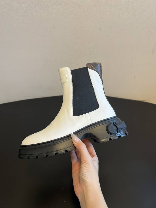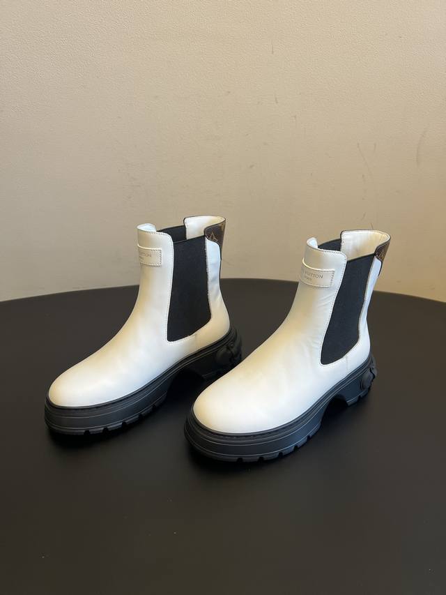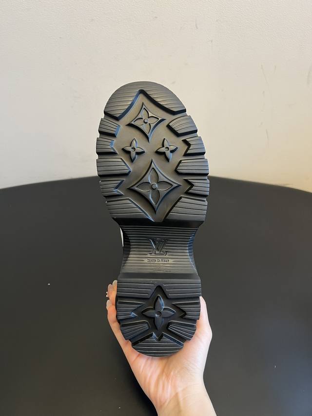 顶级品质 DDD Louis Vuitto*新款皮革切尔西靴系带马丁靴短靴 DDD 包含切尔西靴和系带马丁靴两种款式,都搭配厚底设计,既有切尔西靴的简约利落,也有马丁靴的酷感休闲,鞋身融入品牌经典元素,辨识度高。 DDD 采用优质皮革材质,触感柔软且挺括度好,靴筒贴合腿型不易变形,厚底部分用耐磨橡胶材质,兼顾增高效果与行走稳定性。厚底设计提升身高同时缓冲脚感,切尔西靴的弹性侧边方便穿脱,系带款可调节松紧适配不同脚型,日常通勤或休闲场合都适配。 DDD 鞋面:小胎牛 DDD 内里:牛裡 DDD 大底:Ip发