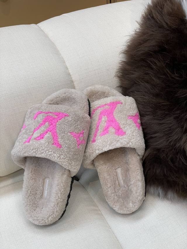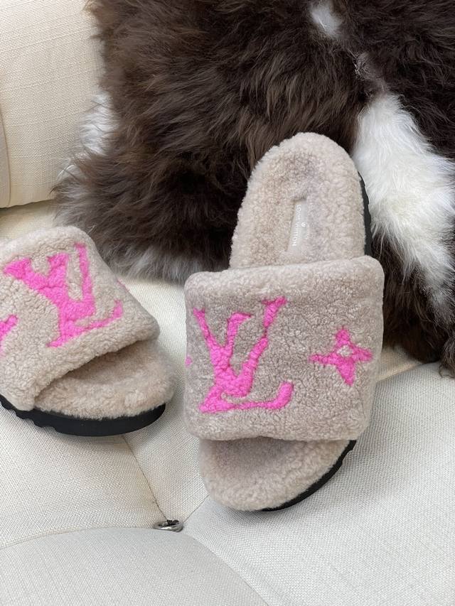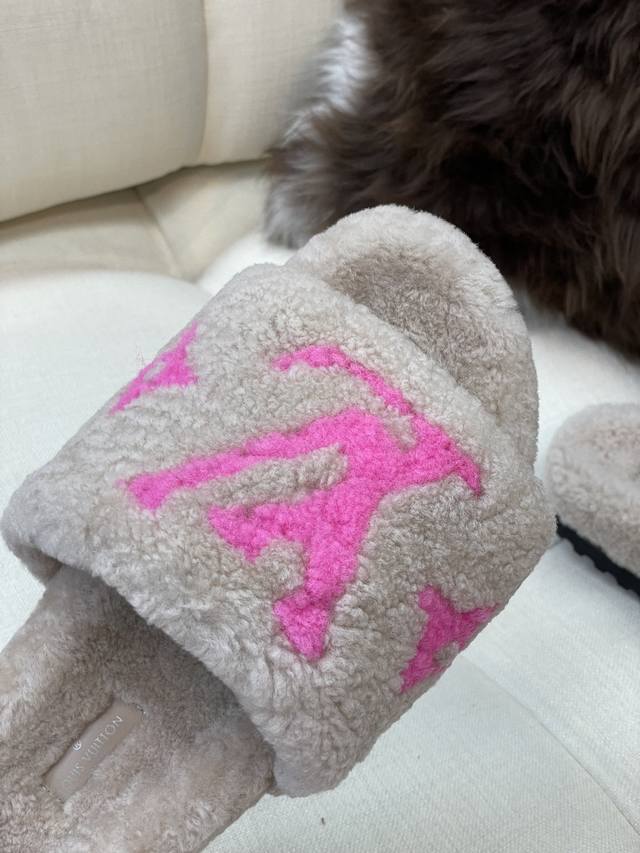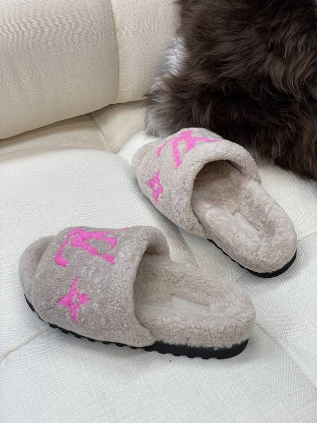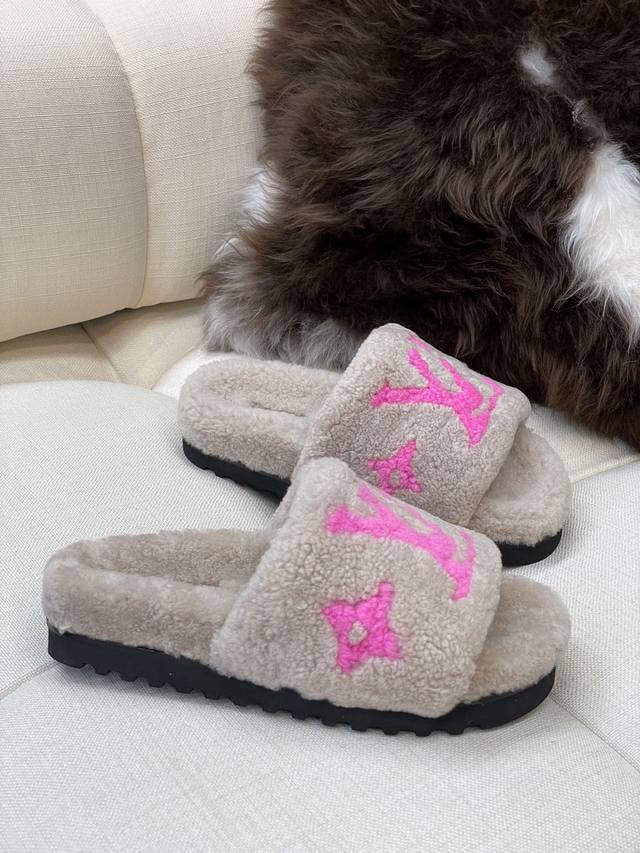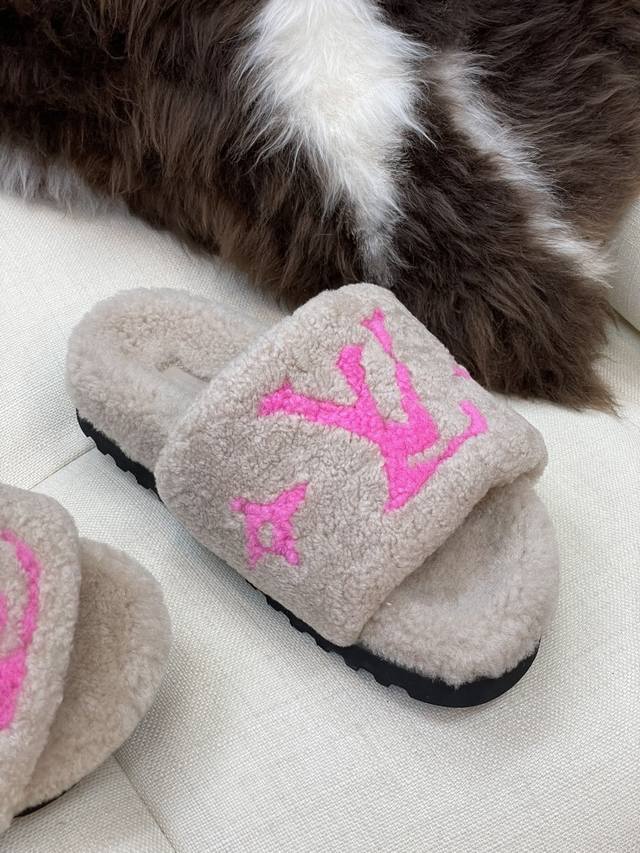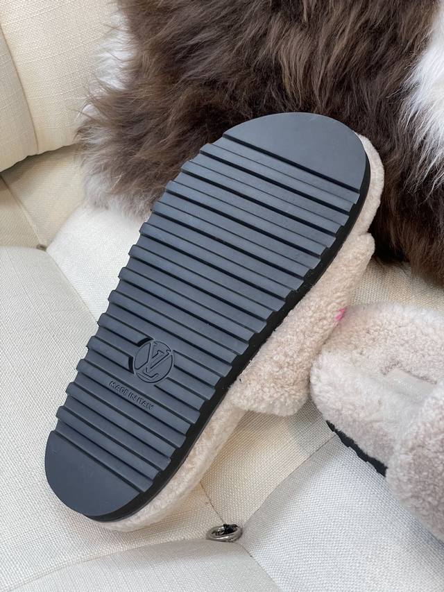 / 顶级品质 Louis Vuitto N 经典羊毛拖鞋 羔羊毛材质,踩云朵的感觉 羊毛提花Logo,简约大气,搭配指数极高 鞋底发泡材质,轻盈且有一定厚度! 顶级