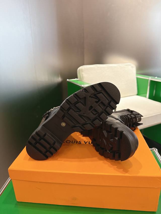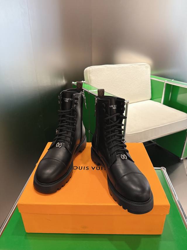 顶级品质 DDD Louis Vuitton路易威登2025秋冬高端定制 各大明星网红走秀款,百年经典,工艺精湛,上脚舒适 本款 Citizen 平底靴以柔滑牛皮革彰显军旅风格,令人瞩目Monogram 图案穿孔点亮鞋头和后部。大小各异的 Lv 字母分饰轻盈橡胶外底和鞋侧,织物鞋带和 Monogram 帆布后袢带完善细节。侧拉链设计方便穿脱。 面料:全粒面牛皮 内里 :牛皮 饰扣:原版开模 大底:原版开模 颜色:黑色 咖色 码数36一40 41 42可以定做 不退换 DDD