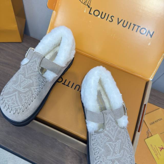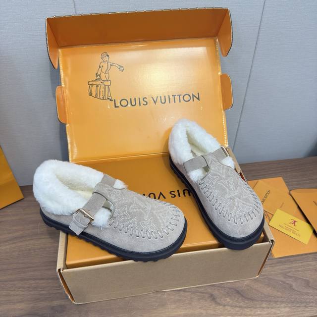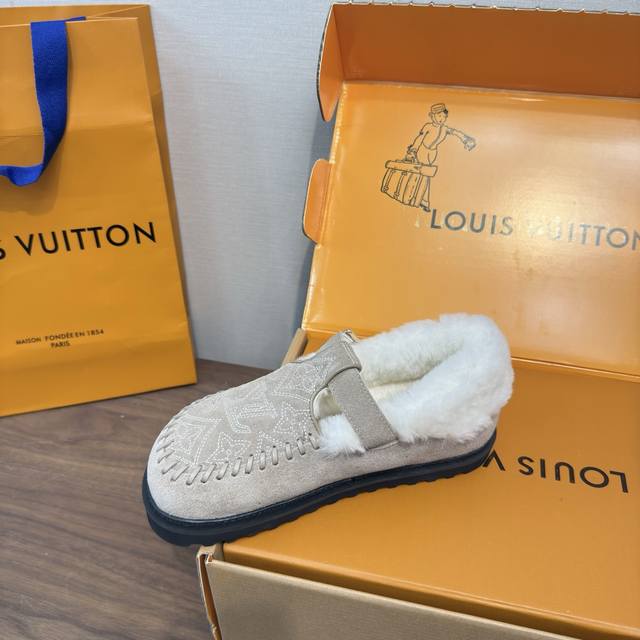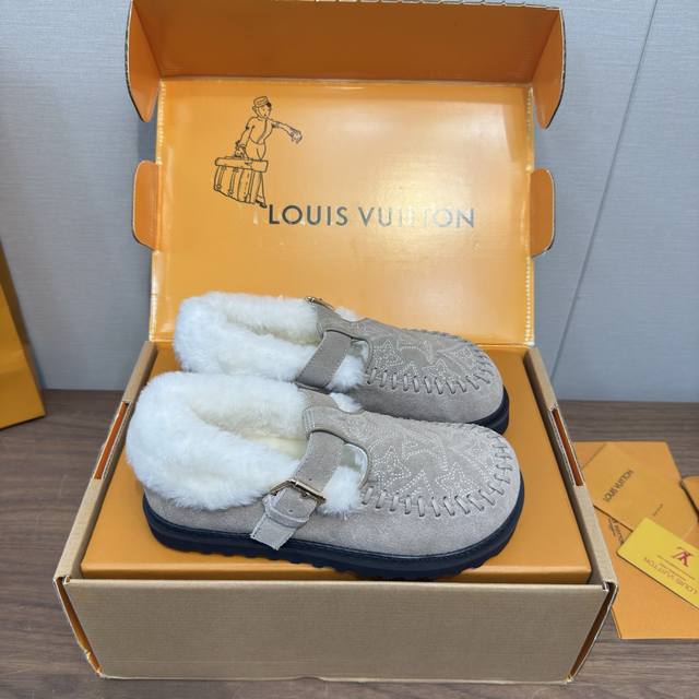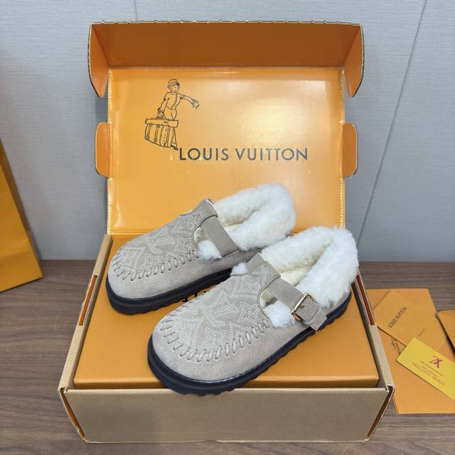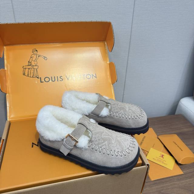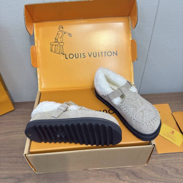 顶级品质 DDD Louis Vuitton 25新款款秋冬 羊毛毛拖鞋 穆勒凉鞋 DDD 頂级品质纯皮毛一体直毛打造!超温暖的感觉,穿上仿佛踩在云朵上Lv经典老花装饰,精致高级!让这双毛拖身价陡增!手工缝制 鞋底是原版开模的pvc发泡防滑大底,非常好穿不打滑,而且鞋底有一定厚度,舒适度极佳! DDD 鞋面:原版澳洲羊毛 DDD 内里:澳洲羊毛 垫脚:澳洲羊毛 DDD 大底:原版发泡底 DDD 包装:原版抽屉盒 DDD 码数35-41 40.41定制 DDD