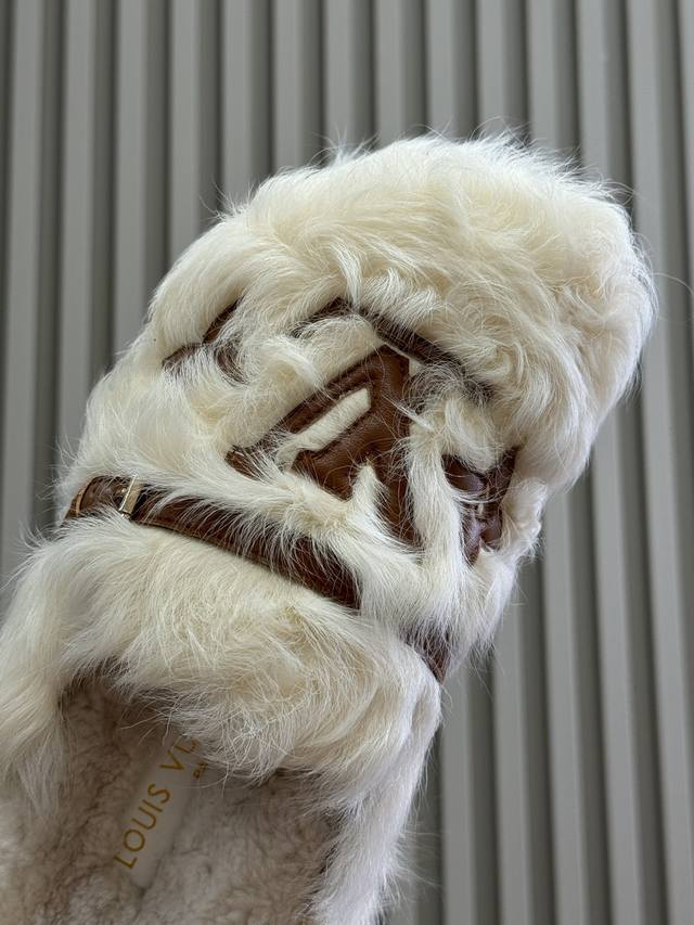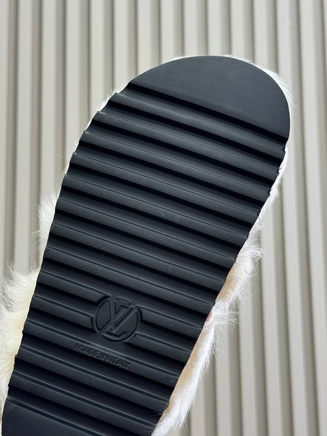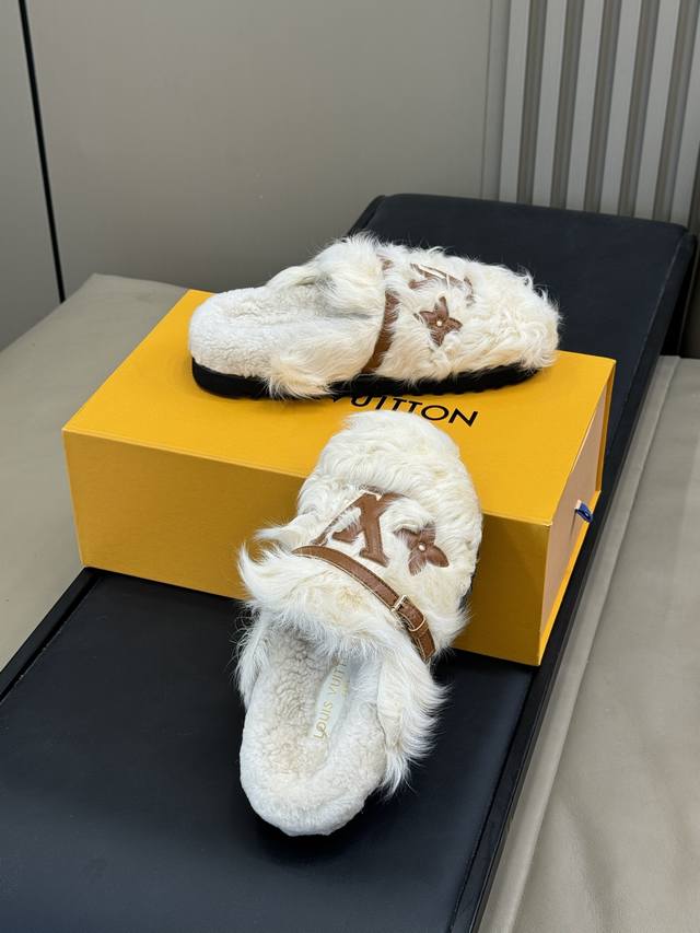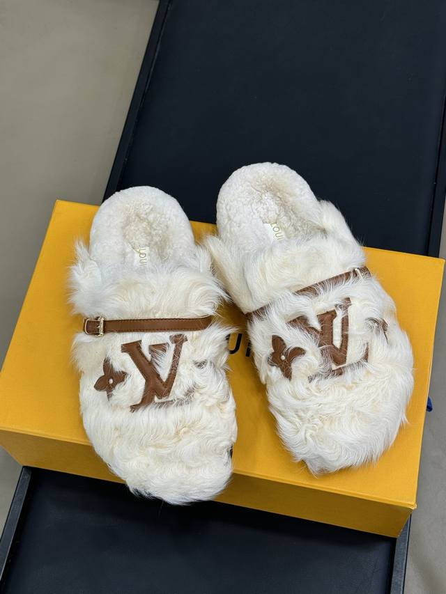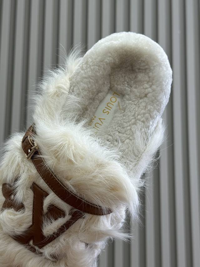顶级品质 Lv 托斯卡纳羊毛半拖 带点松弛凌乱中带点精致时髦气息,给精致女孩的秋冬时髦单品! 鞋面托卡羊毛,垫脚皮毛一体 温暖时髦,好看极了 Size 35-4
