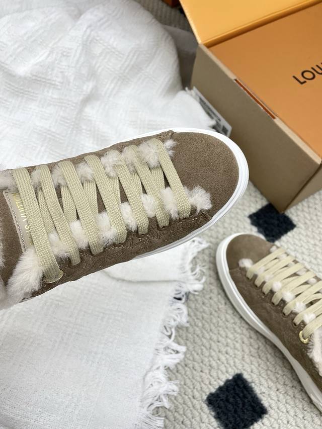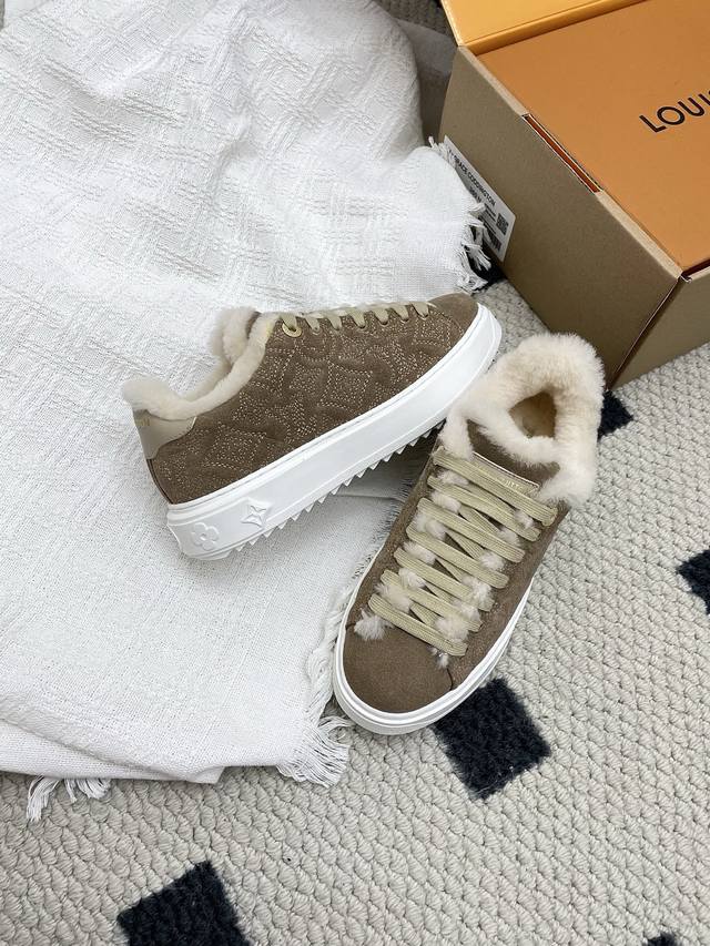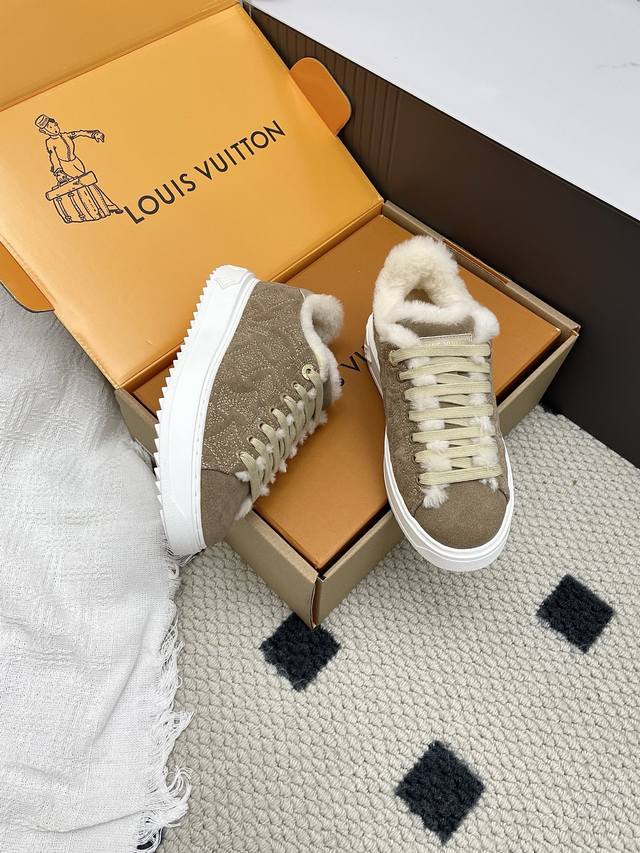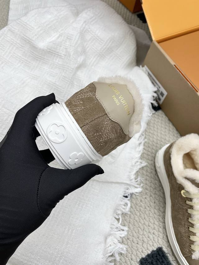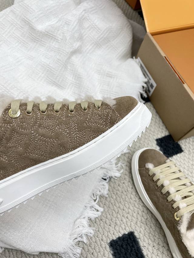 顶级版本代购级Lv驴牌 L家 Time Out 系列 压花 浮雕 吊坠 休闲 小白鞋 运动鞋 原版购入开发 做货 本款 Time Out 运动鞋融合柔软牛皮革,为侧面压印 Lv 字母和 Monogram 花卉。路易威登吉祥物 Vivienne 装饰悬挂于耀目铭纹圈环之上。品牌经典皮革勾勒后部边缘 配送专柜精美包装 面料: 牛反绒 内里:羊毛 鞋底:原版开模Tpu防滑大底 底厚:4Cm Size: 女款35-40 定制41