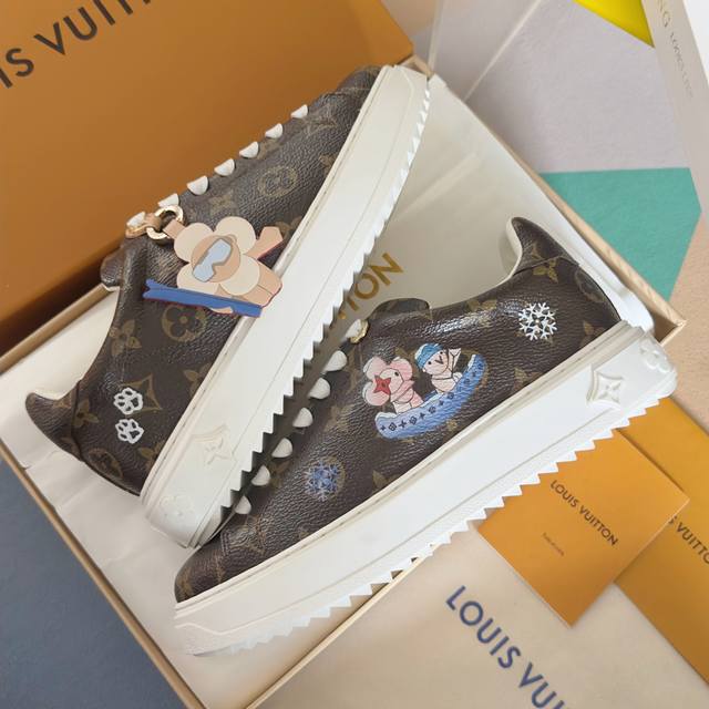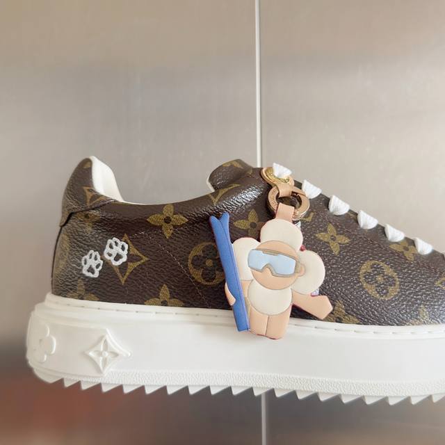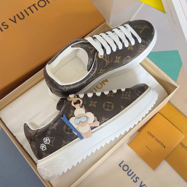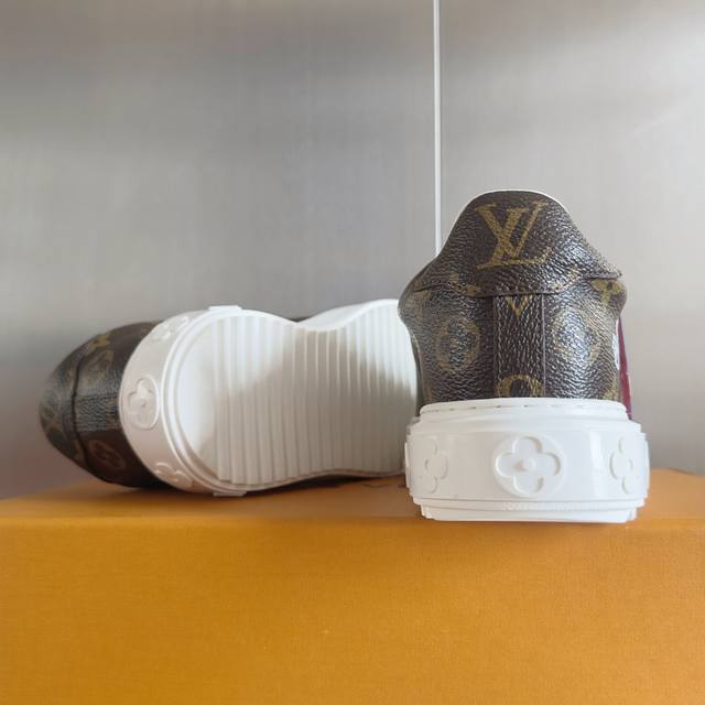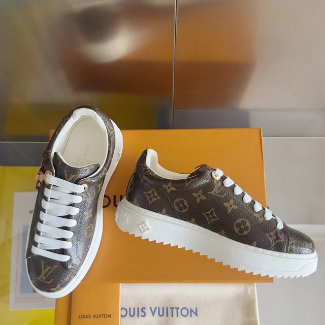 顶级版本:女款 DDD Lv路易威登 驴牌 L家 Time Out 系列 压花 刺绣 羊毛 休闲 小白鞋 运动鞋 DDD 原版购入开发 做货 本款 Time Out 运动鞋拼接漆面牛皮革与 Monogram 压纹牛皮革,演绎路易威登经典设计。粉彩色调释放清逸柔美韵味,Monogram 花卉装点加厚橡胶外底,铭纹孔眼为鞋面增添瞩目亮色 DDD 配送专柜精美包装 DDD 面料: 原版进口头层牛皮 DDD 内里:原版定制保暖羊毛 DDD 鞋底:原版开模Tpu防滑大底 DDD 底厚:4Cm DDD Size: 女