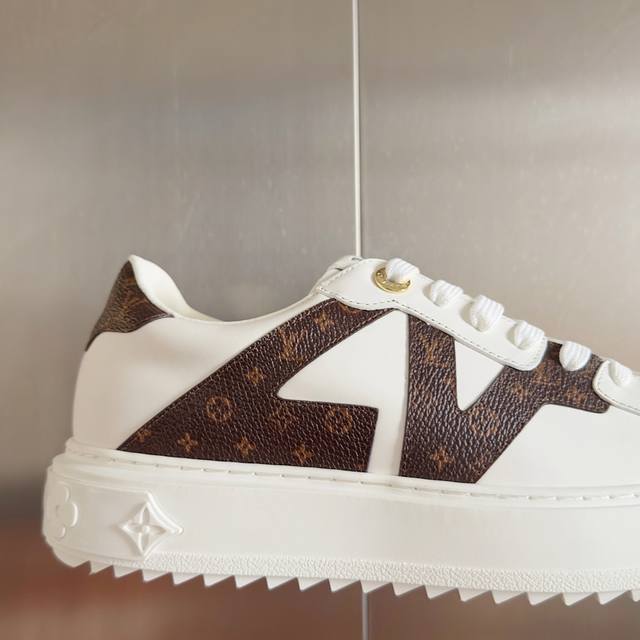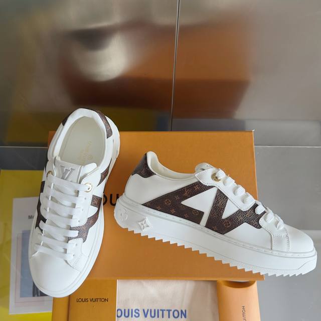顶级版本:女款 DDD Lv驴牌 L家 Time Out 系列 压花 浮雕 吊坠 休闲 小白鞋 运动鞋 DDD 原版购入开发 做货 本款 Time Out 运动鞋拼接漆面牛皮革与 Monogram 压纹牛皮革,演绎路易威登经典设计。粉彩色调释放清逸柔美韵味,Monogram 花卉装点加厚橡胶外底,铭纹孔眼为鞋面增添瞩目亮色 DDD 配送专柜精美包装 DDD 面料: 原版进口头层牛皮 DDD 内里:原版定制柔软羊皮 DDD 鞋底:原版开模Tpu防滑大底 DDD 底厚:4Cm DDD Size: 女款35-4