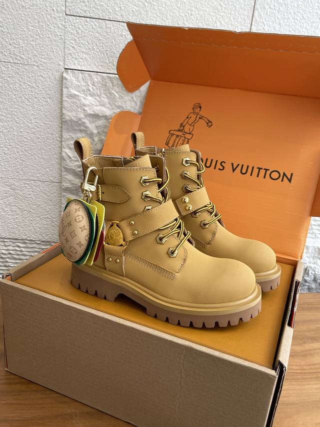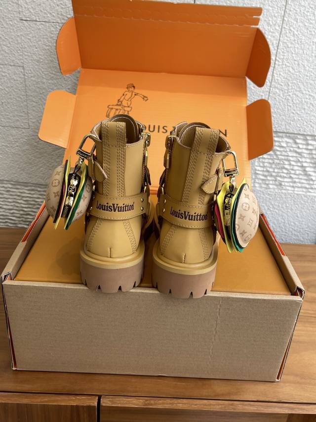 顶级版本:女 配送专柜精美飞机盒 男 不带汉堡包-140 Louis Vuitton 路易威登 2025 秋冬新款 情侣款 可拆卸汉堡包 高筒靴 中筒靴 短靴 当路易威登的精湛皮艺与都市玩趣灵感相遇,便诞生了这款独具匠心的牛皮情侣靴系列。系列采用优质牛皮革制成,推出经典黑色与活力黄色两款配色,并搭配可拆卸汉堡造型挂饰,将高级时装与轻松趣味巧妙融合。涵盖高筒、中筒及短靴款式,为时尚情侣提供从头到脚的默契选择。 趣味汉堡挂饰 每双靴子侧边配有可拆卸的迷你汉堡造型 挂饰,采用皮革与金属拼接工艺,挂饰可随意调节位
