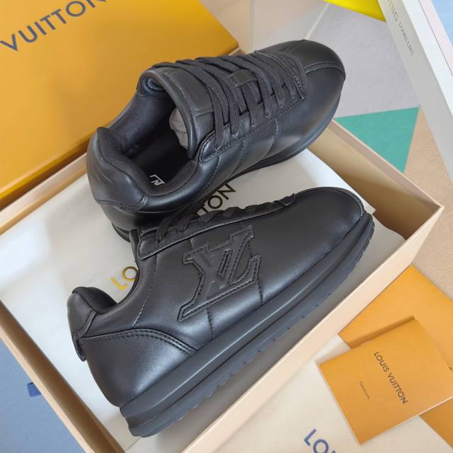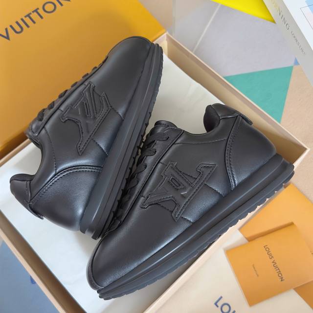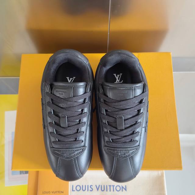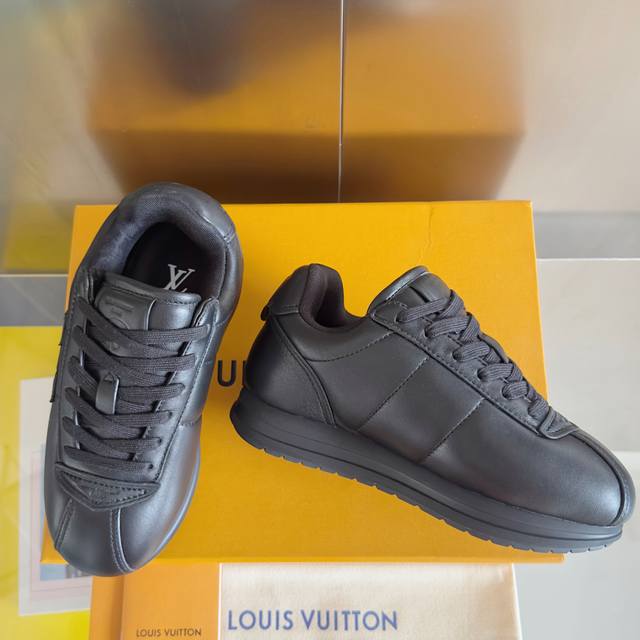 原版购入开发 做货 Lv Buttersoft 运动鞋出自 Pharrell Williams 之手,以柔软的 Monogram 印花羊皮革与牛皮革重绎 1960 年代的潮流构型,再借加衬鞋面升级舒适体验。Lv 字母和皮革饰边点明品牌身份,Pharrell Williams 肖像与龙虾压纹图案共述 2025 秋冬男装秀场风尚