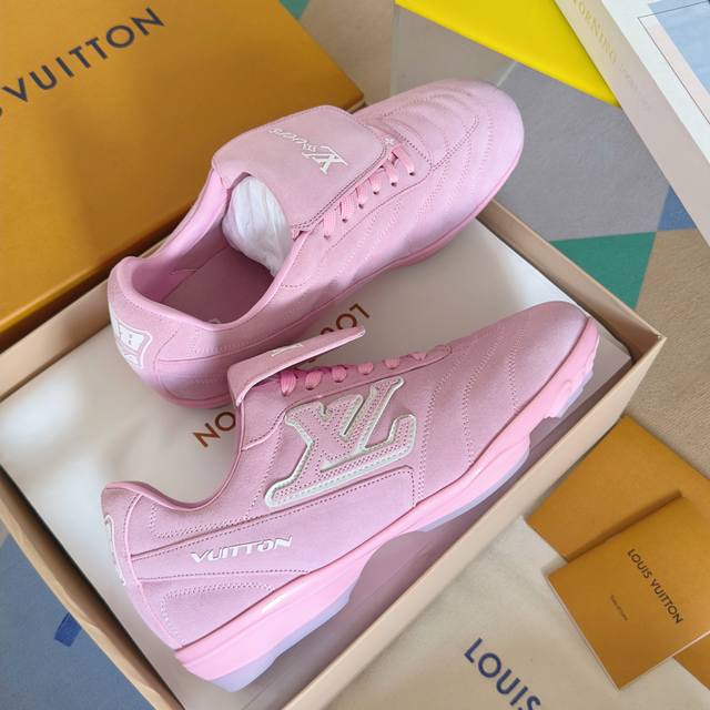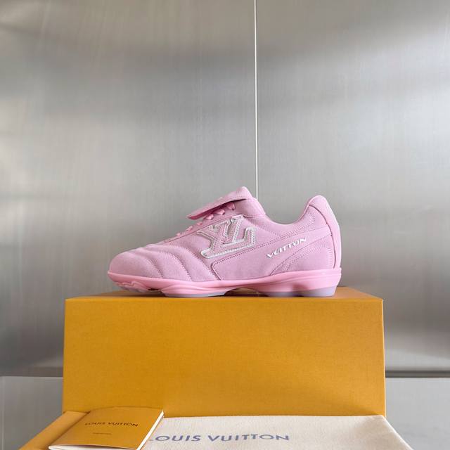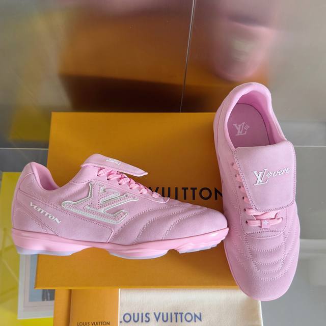 顶级版本:情侣款 Lv路易威登L家 驴牌 最新Footprint系列 情侣款 足球运动鞋 休闲 跑鞋原版购入开发 做货 这款 Footprint Soccer 运动鞋于2025春夏系列时装展中亮相,是Pharrell Williams 首次以足球鞋为灵感设计的运动鞋。鞋款的灵感来自跨越世代和文化的足球运动,呼应2025春夏系列时装展团结一致、全民参与的主题。鞋款以流丽的设计著称,侧面以富动感的Iv Initials标志点缀,鞋舌缀有灵感来自足球队伍的Lvers United徽章,而脚掌纹橡胶鞋底饰有多款路