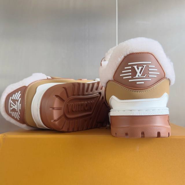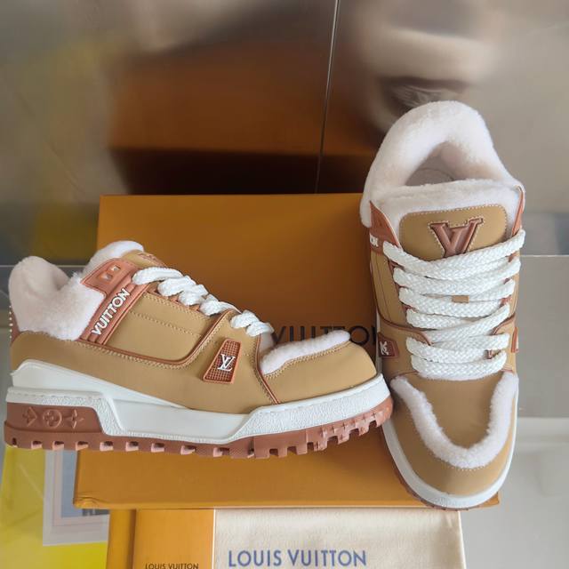 顶级版本:情侣款 DDD Lv驴牌L家最新 胖墩墩 胖嘟嘟 胖丁Trainer Maxi面包鞋 滑板鞋 休闲 情侣款 运动鞋 DDD 专为 Lv Ski 系列设计,Lv Trainer Maxi 运动鞋采用正绒面革制成,并饰有柔软温暖的羊毛皮镶边和内衬。灵感源自经典的 Lv Trainer 运动鞋,本款鞋履以其宽大廓形和轻质 Eva 厚实外底而别具一格。滑雪一天后,换上它尽享惬意与型格 DDD 配送专柜精美包装 DDD 面料: 原版定制进口头层牛皮 DDD 内里: 原版定制透气网里 DDD 大底: 原版开