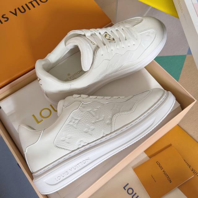 顶级版本:男款 DDD Lv路易威登 L家 驴牌 Beverly Hills系列 厚底 休闲 运动鞋 DDD 本款 Beverly Hills 运动鞋选用 Epi 正绒面革,复刻品牌标志性 Epi 皮革的粒面纹理。简约纯色鞋面衔接厚实而不失轻盈的橡胶外底,手写体路易威登标识点缀一侧。路易威登巴黎标识和 Lv 字母分饰后部和鞋舌 DDD 配送专柜精美包装 DDD 面料: 原版进口头层牛皮 DDD 内里:原版定制透气网里 DDD 鞋底:原版开模发泡橡胶材质 DDD 底厚:4Cm DDD Size: 男款39-