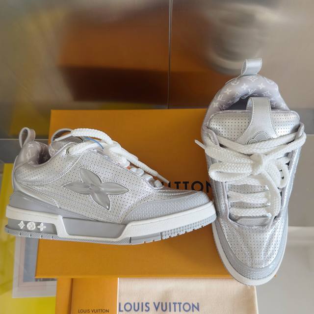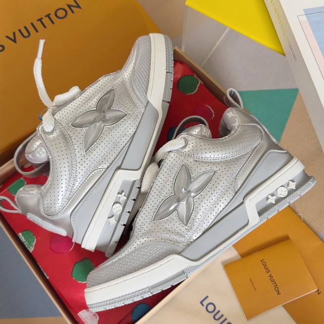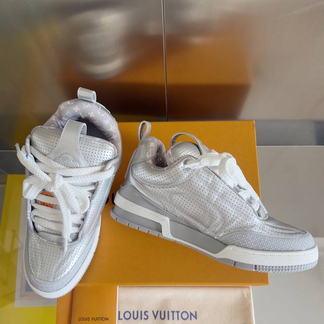 顶级版本:男款 Lv驴牌L家Skate 系列 最新配色 Tariner运动鞋 四叶草 滑板鞋 情侣款 复古篮球鞋原版购入开发 做货 本款 Lv Skate 运动鞋以缤纷细节点缀粒面牛皮革鞋身,呼应当季皮具与成衣系列。运动鞋侧面绽放渐变 Monogram 花卉。加衬鞋舌与 Mini Monogram 织物内衬衣领展现 1990 年代滑板鞋的灵感启发配送专柜精美包装面料 : 原版定制头层牛皮内里 : 进口透气网里鞋底 : 原版开模防滑Tpu材质底厚 :3.5Cmsize : 男款39-45
