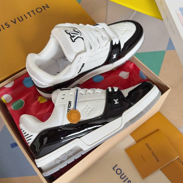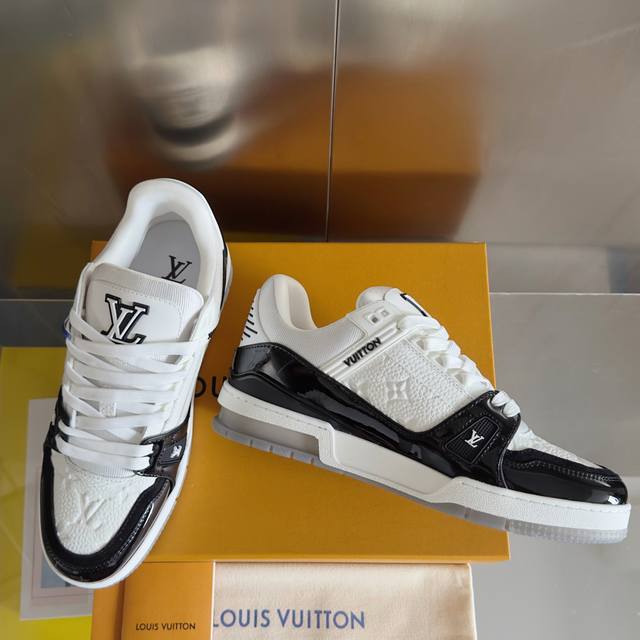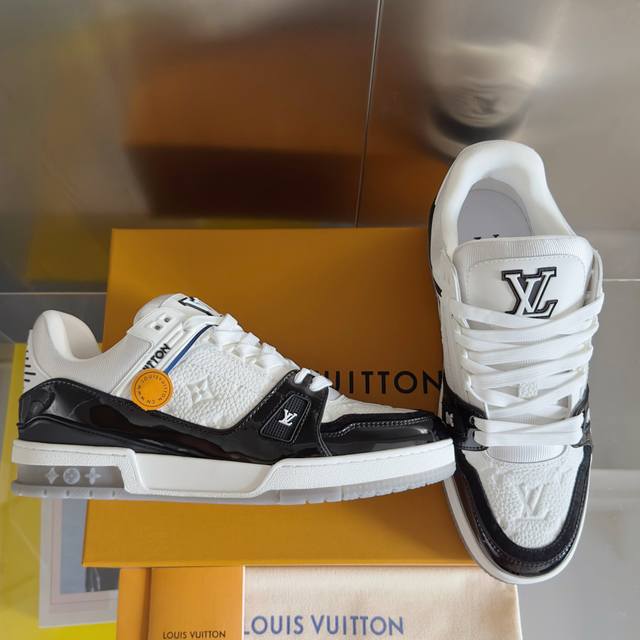 顶级版本:男款 DDD Lv Trainer路易威登 驴牌 L家 情侣款 休闲 运动鞋 滑板鞋 DDD 原版购入开发 做货 本款 Lv Trainer 运动鞋为光滑牛皮革描绘 Monogram 图案,讲述复古篮球鞋的灵感启发。繁复鞋面点缀 Lv 字母,#54 标识追溯品牌诞生的 1854 年 DDD 配送专柜精美包装 DDD 面料: 原版定制进口头层牛皮 DDD 内里: 原版定制透气网里 DDD 大底: 原版开模防滑Tpu材质 DDD 底厚: 3Cm DDD Size: 男款38-46 DDD