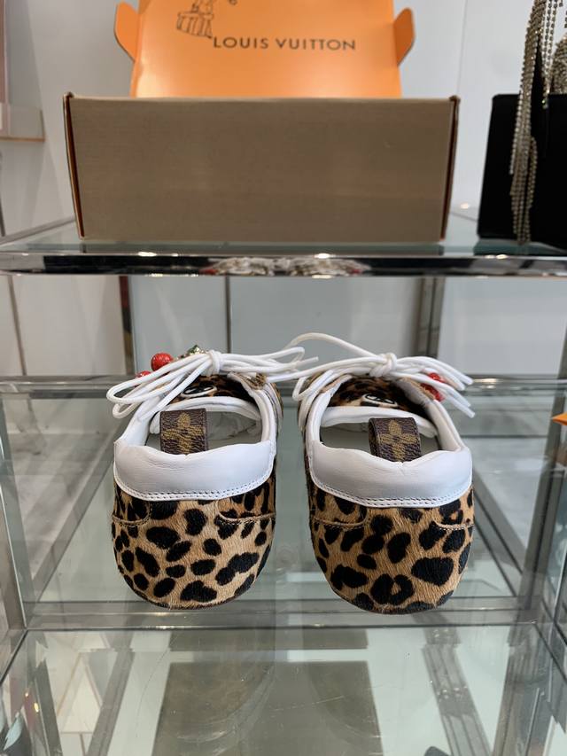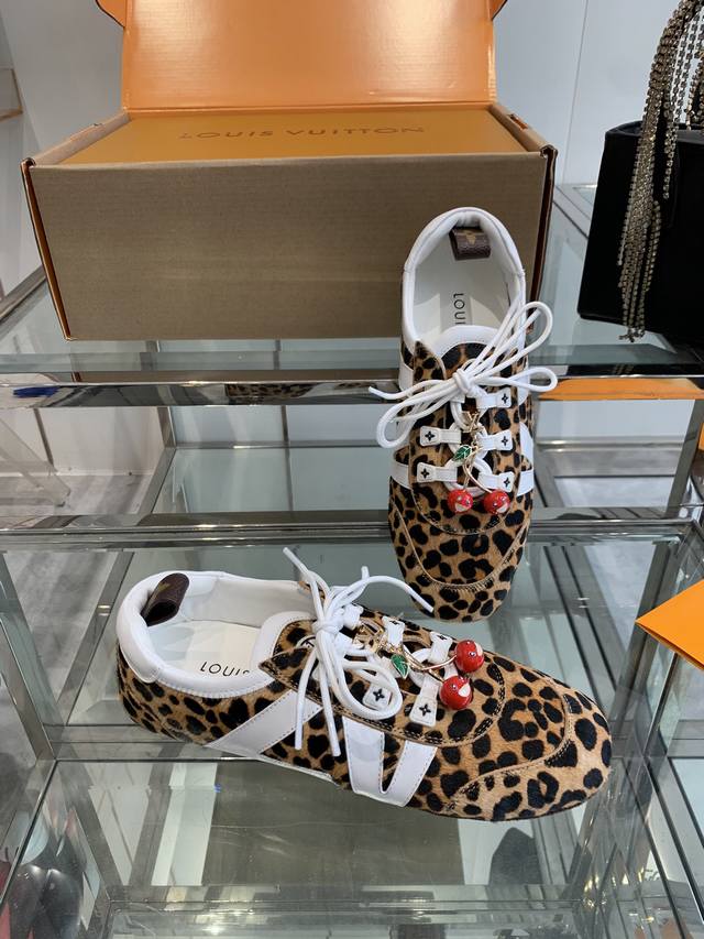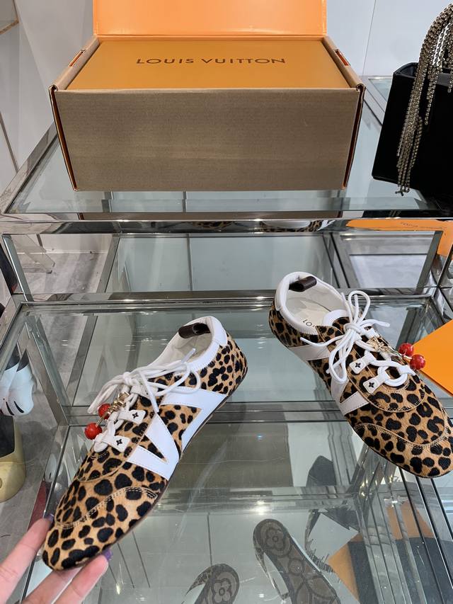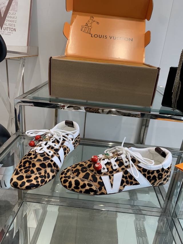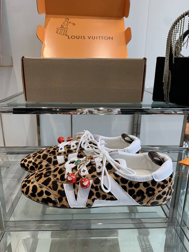 顶级版本 女款 男款510樱桃配饰60 Louis Vuitton 路易威登驴牌 25Ss春夏Sneakerina系列 芭蕾运动鞋 德训鞋 情侣款 Sneakerina 芭蕾风运动鞋以丝滑绒面牛皮革塑造流畅线条 兼具芭蕾舞鞋的轻盈构型和运动鞋的舒适质感 侧面 Lv 标识Monogram 帆布后袢带丰富细节 Sacchetto 工艺和 Tpu 外底升级轻柔穿着体验 三款配饰 随意搭配 面料 原版定制进口头层牛皮 内里 原版定制透气网里原版开模大底 注塑Tpu材质 码数: 35-45 女40 男45 定做