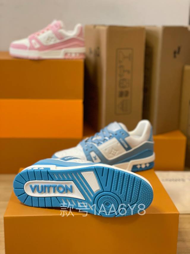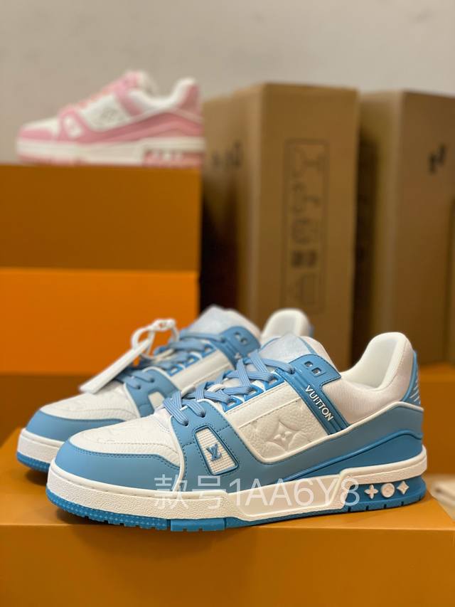 顶级版本 情侣款上线路易威登Lvtrainer 运动鞋Virgil Abloh 马卡龙系列款号1Aa6Y8从复古篮球鞋汲取灵感,打造备受青睐的Lvtrainer运动鞋。此款鞋履为粒面牛皮革压印标志性Monogram 图案,与光滑牛皮革共同成就新经典设计。独家定制牛皮1:1所有切边口都按照原版的步骤加工涂边独家私模Vuitton 标识,鞋带排定制丝滑网里Tpu组合成底耐磨防滑防黄原版开模大底也深藏着Monogram 花卉流程:全电脑针车拉线。鞋头,后套,冷热加工定型。全套拉帮套楦。35-40女39-44 4