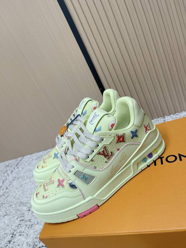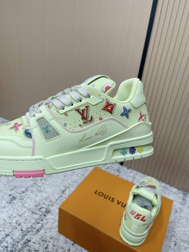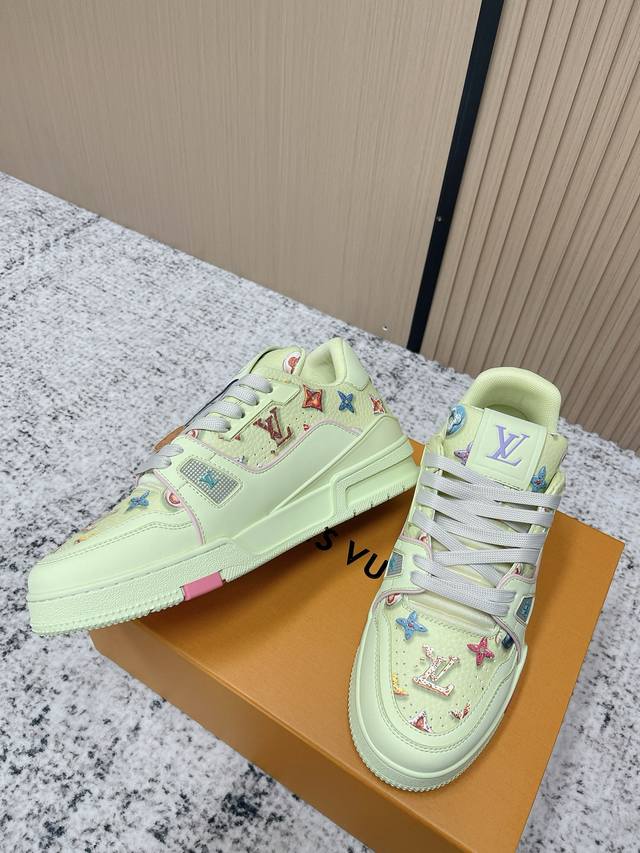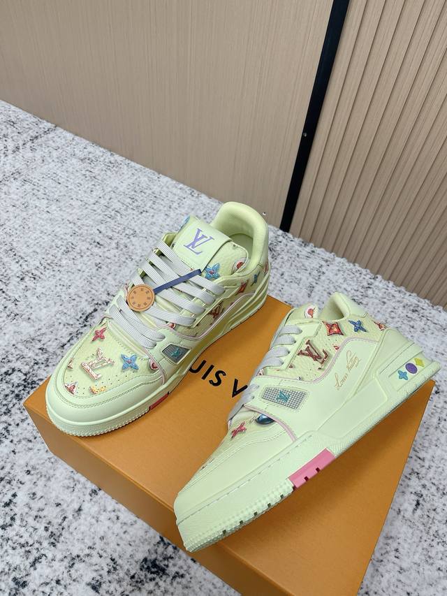 FFF 顶级版本: 情侣款 DDD Lv Trainer~~全新升级版~~经典回归 DDD 情侣款,滑板鞋,篮球鞋,运动鞋 DDD Lv全新运动系列;复古风视感;拥入家族多方面经典原素;超级帅气~~ DDD 全皮革面料,搭配Lv徽章布面,透气纱网内里,原版大底,原版鞋楦,更多细节对比大货实物完美高 DDD Size:35 45 女40.41男45定做 DDD