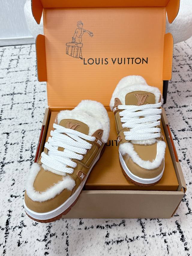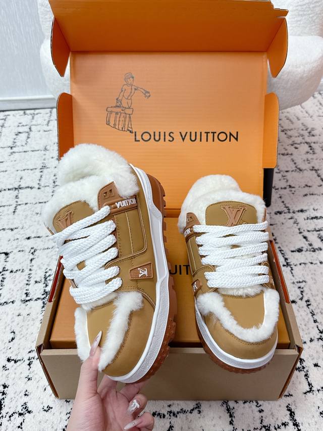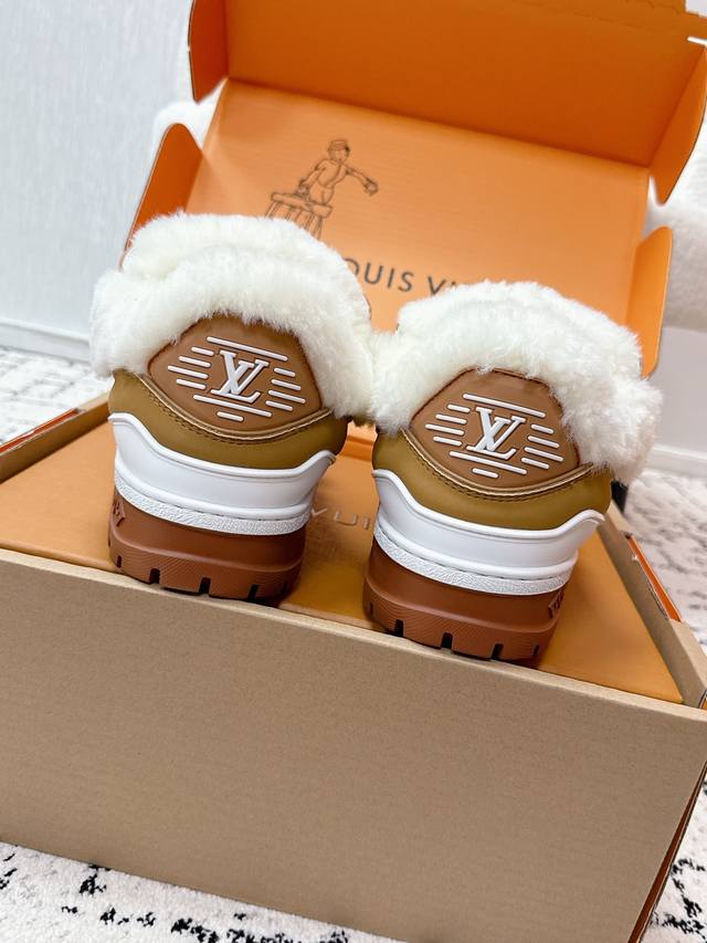 顶级版本 羊毛里款 Lv路易威登 驴牌 25 Trainer Maxi 胖丁系列 面包 厚底 滑板 休闲 羊毛里款 运动鞋 原版购入开发 做货 可爱胖Train