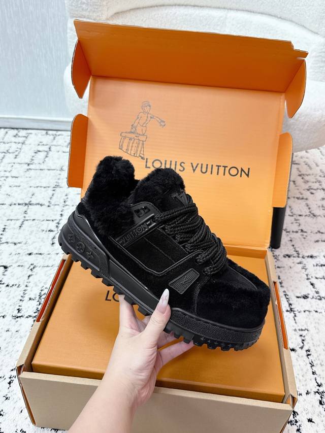 顶级版本 羊毛里款 DDD Lv路易威登 驴牌 25 Trainer Maxi 胖丁系列 面包 厚底 滑板 休闲 羊毛里款 运动鞋 DDD 原版购入开发 做货 可爱胖Trainer,来闭着眼睛买的款式,打破颜色的单一变化,更年轻了胖Trainer也可以叫发福鞋,憨态可掬,可可爱爱最经典的胖子鞋型,最经典的配色, 高端大气上档次 每个款式配色都很赞!原版开模可爱饰扣,原版完全一样材质做工细节 DDD 面料: 原版定制进口头层牛皮 DDD 内里: 原版定制羊毛 DDD 大底: 原版开模Tpu组合大底 DDD
