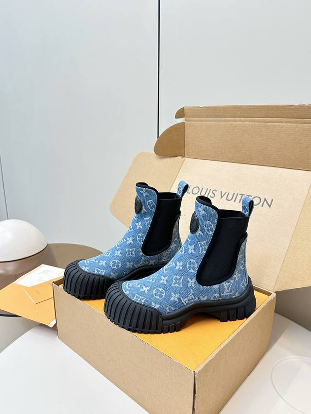 顶级版本 豪华包装 Louis Vuitton Lv经典网红款切尔西短靴 Lv Ruby 短靴顶级版本爆款来袭,哈哈新款的靴靴非常特别,平底靴在硬朗和柔美之间激