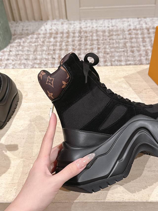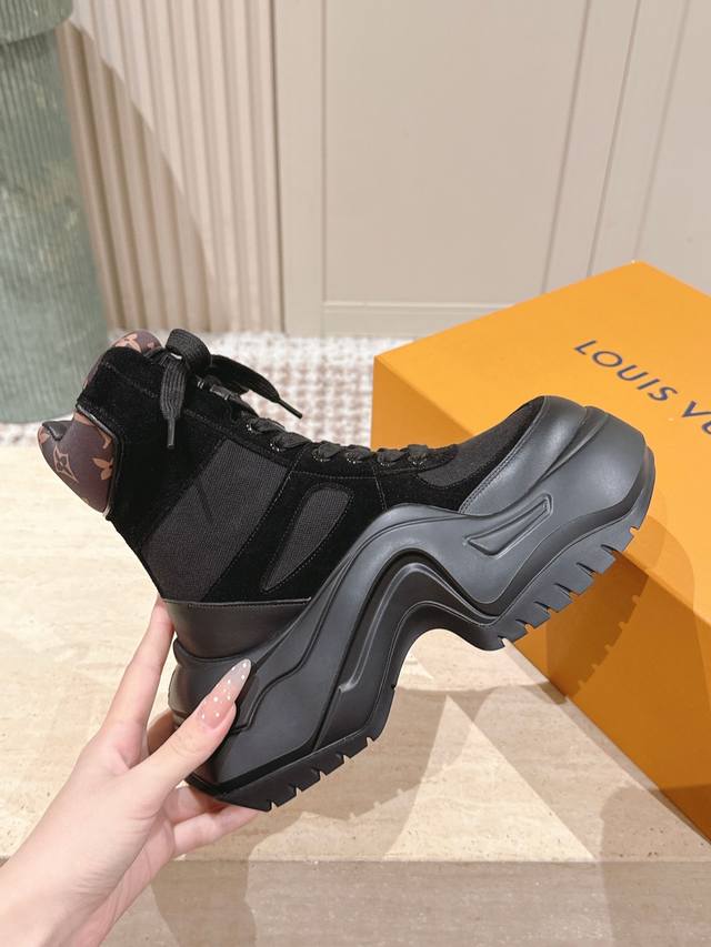 顶级版本: : 路易威登 Lv 专柜同步系列新款老爹靴 :厚底2.0 冬短靴潮气逼人 尽显青春活力,日常穿搭超级抢眼,经典的拱形设计,一向被称之为美腿神器!绝对