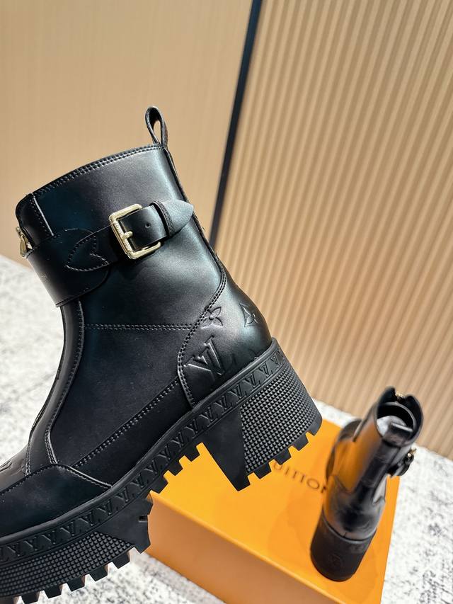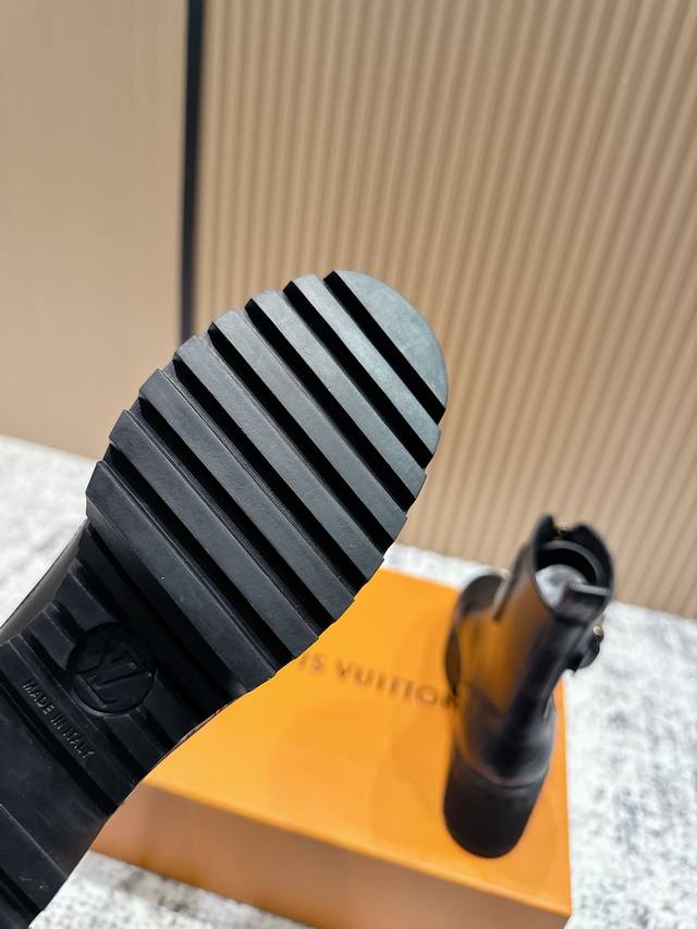 顶级版本: 高版本 Lv驴牌 经典高跟马丁靴 粗跟沙地靴系列 原版一比一复刻 可对比细节 楦形 材料 大底等 鞋面牛皮 老花皮拼接 绒毛里 整条鞋带都是真皮切条