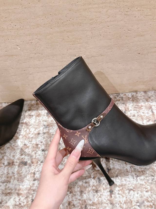 顶级版本: :高版本Louis Vuitton 25Ss Lv驴牌秋冬新款高跟短靴 楦型百搭瘦脚Yyds.造型立体饱满,气质满满 上脚舒适 非常复古风、气场十足