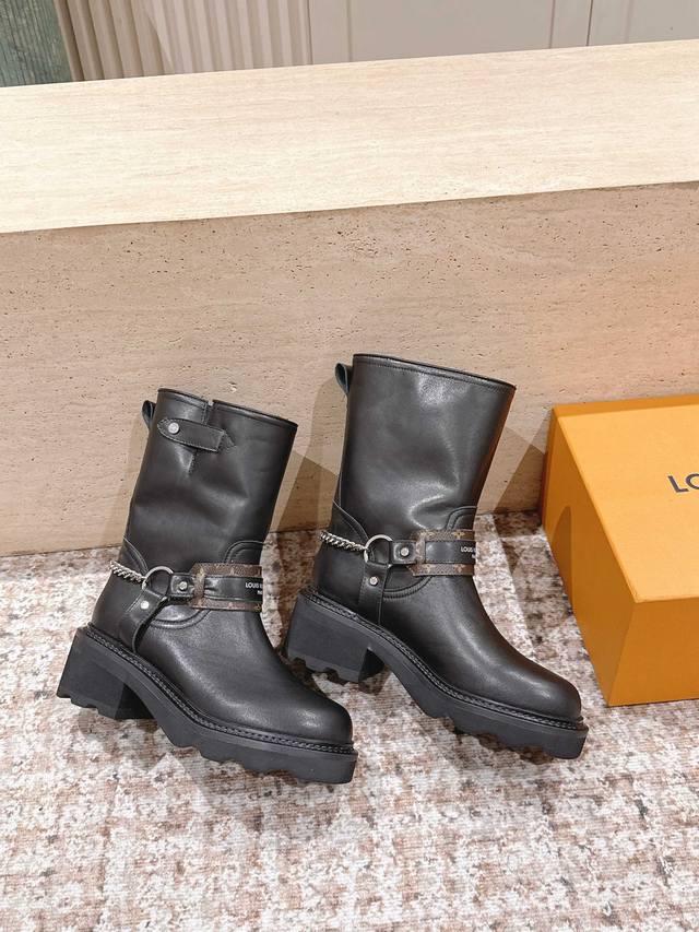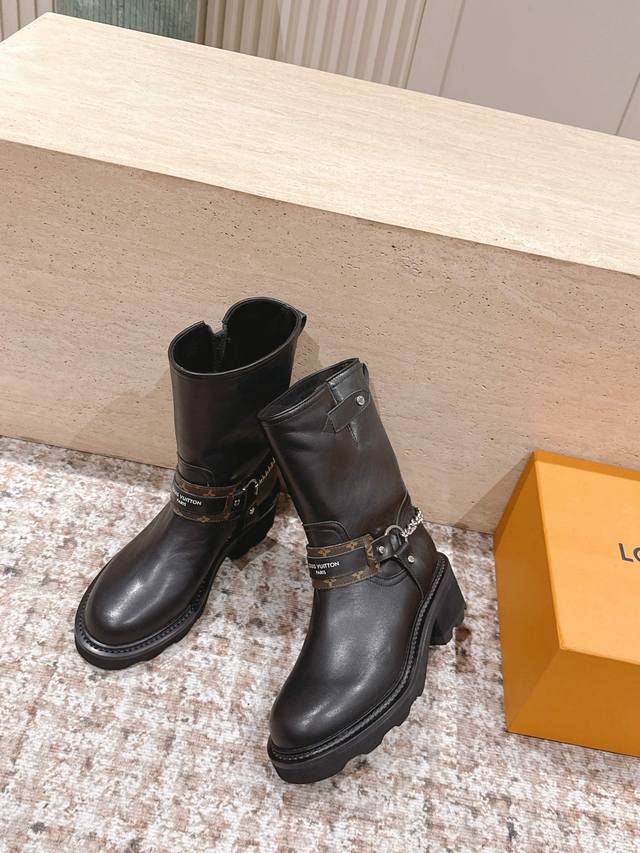 顶级版本: :高版本Louis Vuitton 25Ss Lv驴牌秋冬新款高跟短靴 楦型百搭瘦脚Yyds.造型立体饱满,气质满满 上脚舒适 非常复古风、气场十足